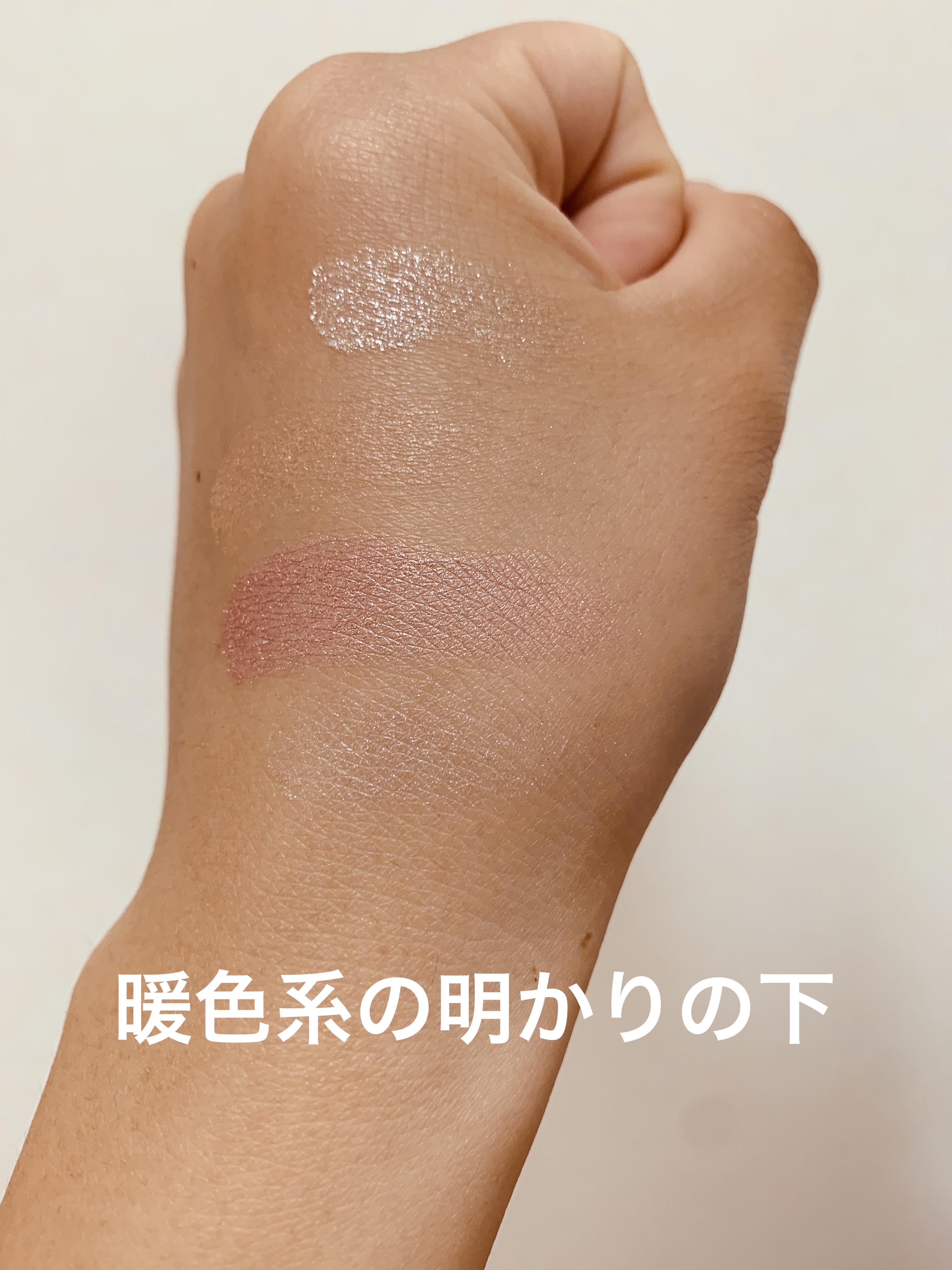 華やかなシルバーグリッター ベースのカラーは無色だけど、ぎっしりとつまった細かいラメがしっかりと主張してるのでかなり華やかな印象です。 超繊細!馴染み重視の万能ハイライター ベースはサーモンピンクですが、肌色に馴染んで殆ど発色しないので黄味が怖い人でもかなり使いやすいです。 しっかり発色!ツヤツヤチークカラー しっかりピンクに発色します。ラメがチラチラする感じは無くてナチュラルです。