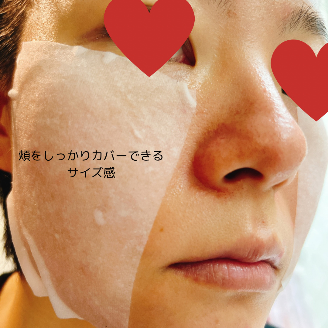 使用時間1分で水分ツヤケアができるシートマスクです。 このシートマスクにはPHA成分が含まれていて、角質除去が期待できます。 シートはわりと薄めです。が、しっかり水分を含んでいることが分かります。 密着度が高いです。シートの大きさや目、鼻、口の位置は私にはぴったりでした。 美容液はちょっととろみがあるものの、重たさがあるわけでもなく、ベタつきもありませんでした。