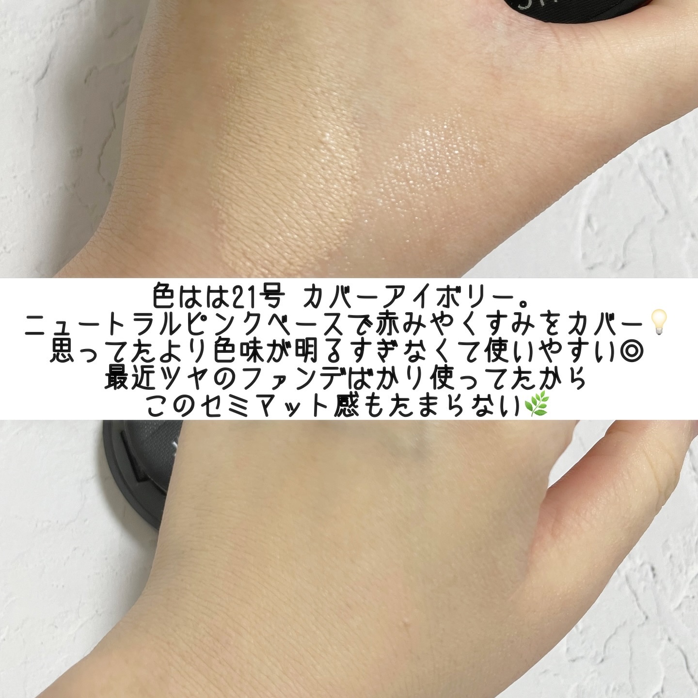スキンケアブランドとして有名なイナセンシャルからついにクッションファンデが発売されて ナイアシンアミドを始め、ヒアルロン酸やコラーゲンエキスといった保湿成分がしっかり入ってるからしっとり肌に馴染むけど ノーセバムパウダーも配合してるから仕上がりがセミマットになるの😳 マスクプルーフでマスクにつきにくいから、乾燥肌の人はパウダーなしでこれだけでも良いかも🥺✨ しかも薄付きだから、ファンデが苦手な方にもおすすめできるし重ね付けするとカバーもしてくれるからカバー力も問題なかったよ◎ そして私が好きなポイントが抗菌テスト済みの99.9%抗菌パフ👀🫧