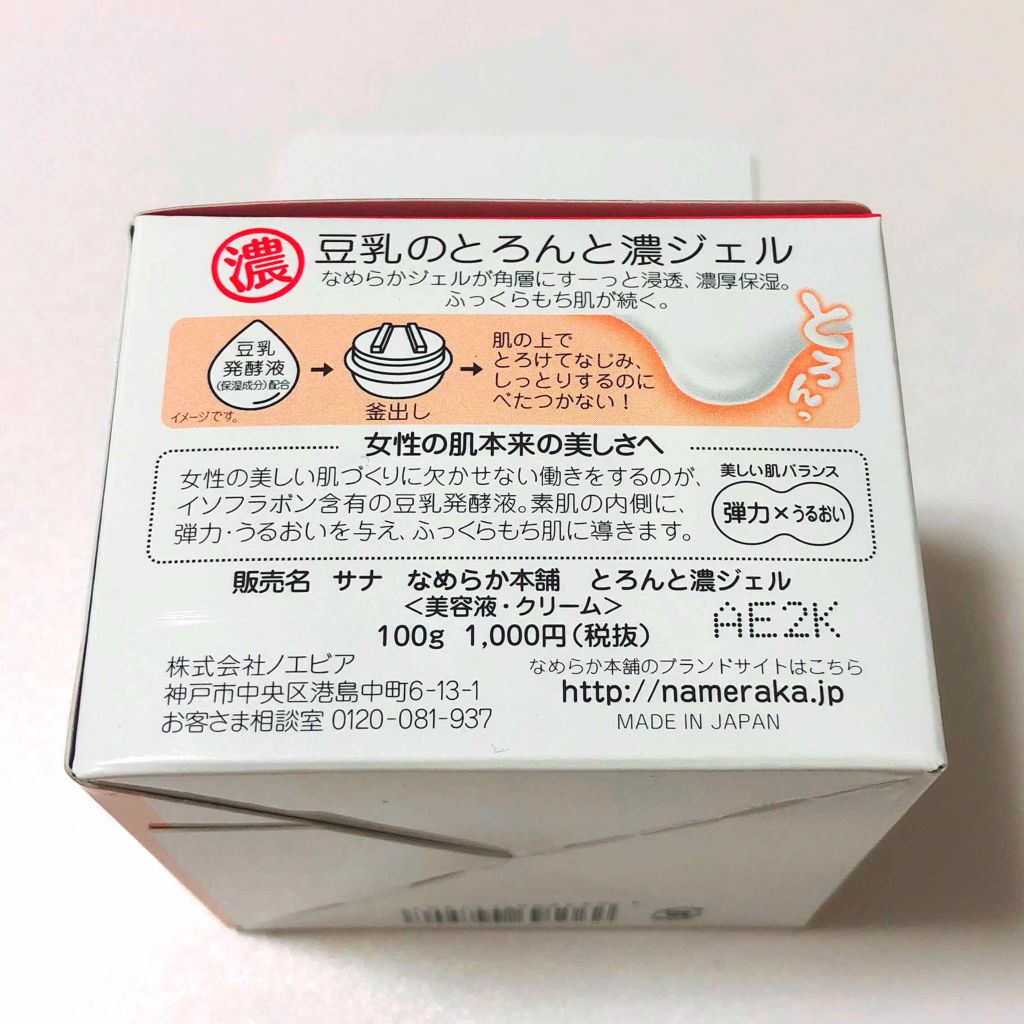 - これひとつでなめらかなふっくらもち肌に導く1個で6役のオールインワンジェル これひとつでスキンケアが完了! 豆乳発酵液*1仕込み!時短しながら大満足のうるおいでふっくらもち肌 こだわりの3つの大豆由来成分を贅沢に配合。 時短を叶えるオールインワンジェルでありながら、高い浸透力と保湿力を体感していただけます。 〔 ①豆乳発酵液*1仕込みのオールインワンジェル 〕 『なめらか本舗』こだわりの豆乳発酵液*1をはじめ、ダイズ種子エキス*1、ダイズタンパク*1を贅沢に配合したジェルを細かなメッシュで絞り出し、その後熟成。 肌あたりなめらかな濃いジェルがふっくらもち肌に導きます。 〔 ②お肌のうるおいを守ります 〕 お肌の上でとろけるようになじみ、みずみずしく変化するジェルなので、お肌の奥*2までぐんぐん浸透します。 さらにお肌に膜を張ってうるおいを閉じ込めます。とろんと濃い形態記憶ジェル。 """"とろんと濃い形態記憶ジェル"""" 豆乳ににがりを加えると固まるのは、イオンの力のおかげ。とろんと濃ジェルのとろんと感も、イオンの力を利用しています。 〔 ③洗顔後これひとつでOK!忙しい朝にも時短スキンケア 〕 """"化粧水・美容液・乳液・クリーム・パック・化粧下地"""" の6役がこれひとつでOK。忙しい朝にぴったりです。 *1保湿成分 *2角層