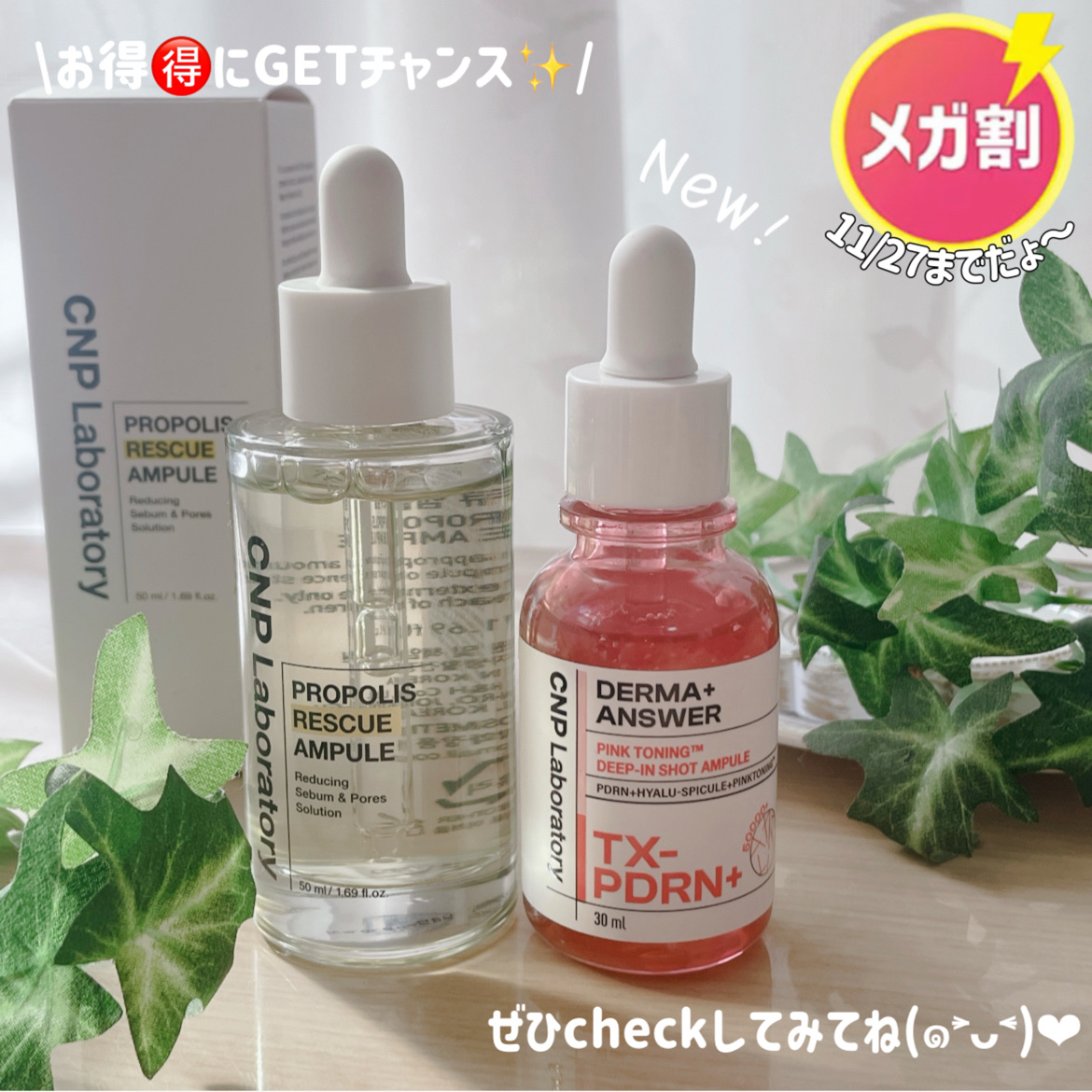 PDRN+トラネキサム酸の美白特化成分組み合わせでくすんだ毛穴を明るく照らしてくれるピンクライト針美容液🩷 CNP独自の「ヒアルロンスピキュール」を含み保湿感、毛穴引き締め、ニキビ跡・シミ改善の働きがあるのだそう! 冬の乾燥を防いぐ強い味方になってくれそう💗