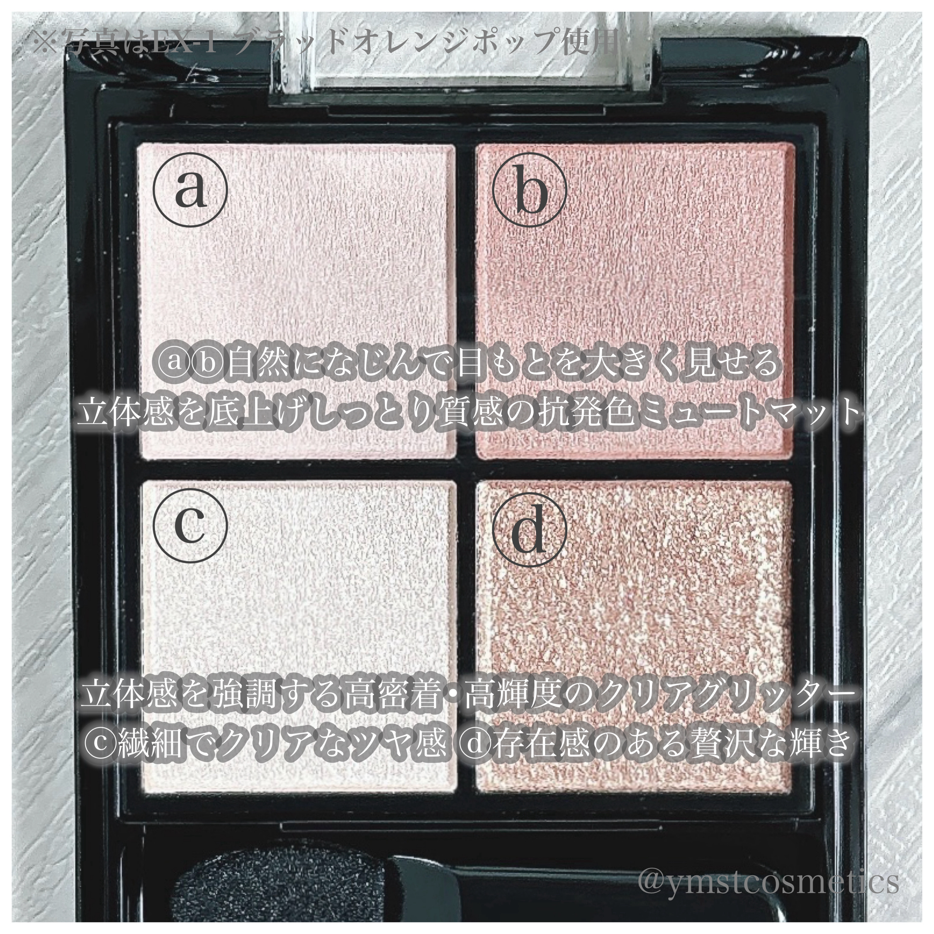 - ミュートマット×きらめきグリッター 正反対の2つの質感コントラストでクリッと丸い目もとに仕上がる ポップアップするような立体的シルエットを引き立てる 質感トリックアイシャドウ ■チップ付き <EX-1 ブラッドオレンジポップ><EX-2 ホットレッドポップ><EX-3 ウォームベリーポップ> 質感トリックで、クリっと丸い目もと印象へ。 ミュートマットときらめきグリッターの正反対の2つの質感コントラストで、ポップアップするような立体的シルエットを引き立てるアイシャドウ。 ほんのり血色感を足せる火照りカラーが登場。 ■淡いパステル調の限定色 EX-4【コットンブルーポップ】 EX-5【コットンピンクポップ】