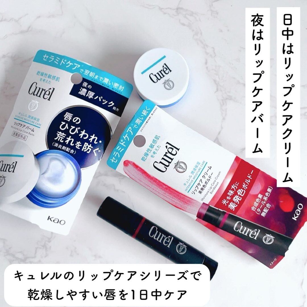 キュレルリップケアクリーム(美発色シリーズ)美発色ピンクを使っています🩷タール不使用なのが良いなと思って購入しました✨色は薄づきですが唇を血色良く見せてくれる気がします。乾燥もしにくいと思います。ティントではないので塗り直しは必要ですが、香り...