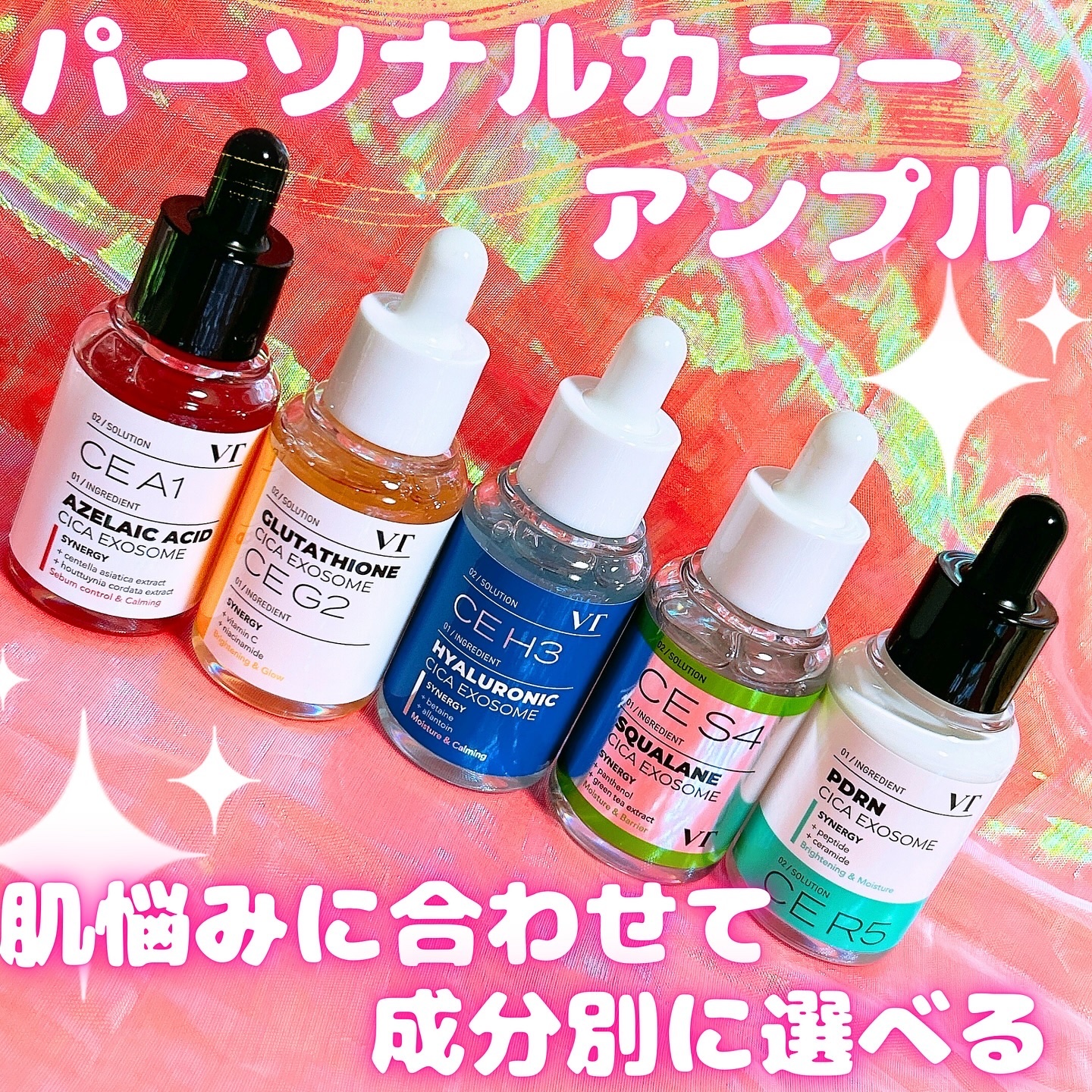 VT独自のCICAエクソソーム配合🌿 毎日使用可能なのも嬉しい〜!肌悩みに合わせて選べる成分別アンプル⬇️ 肌艶ケアのヒアルロン酸×PDRNがお気に入りです🩵🤍✨ Qoo10メガ割期間限定、1+1でゲットできる✨
