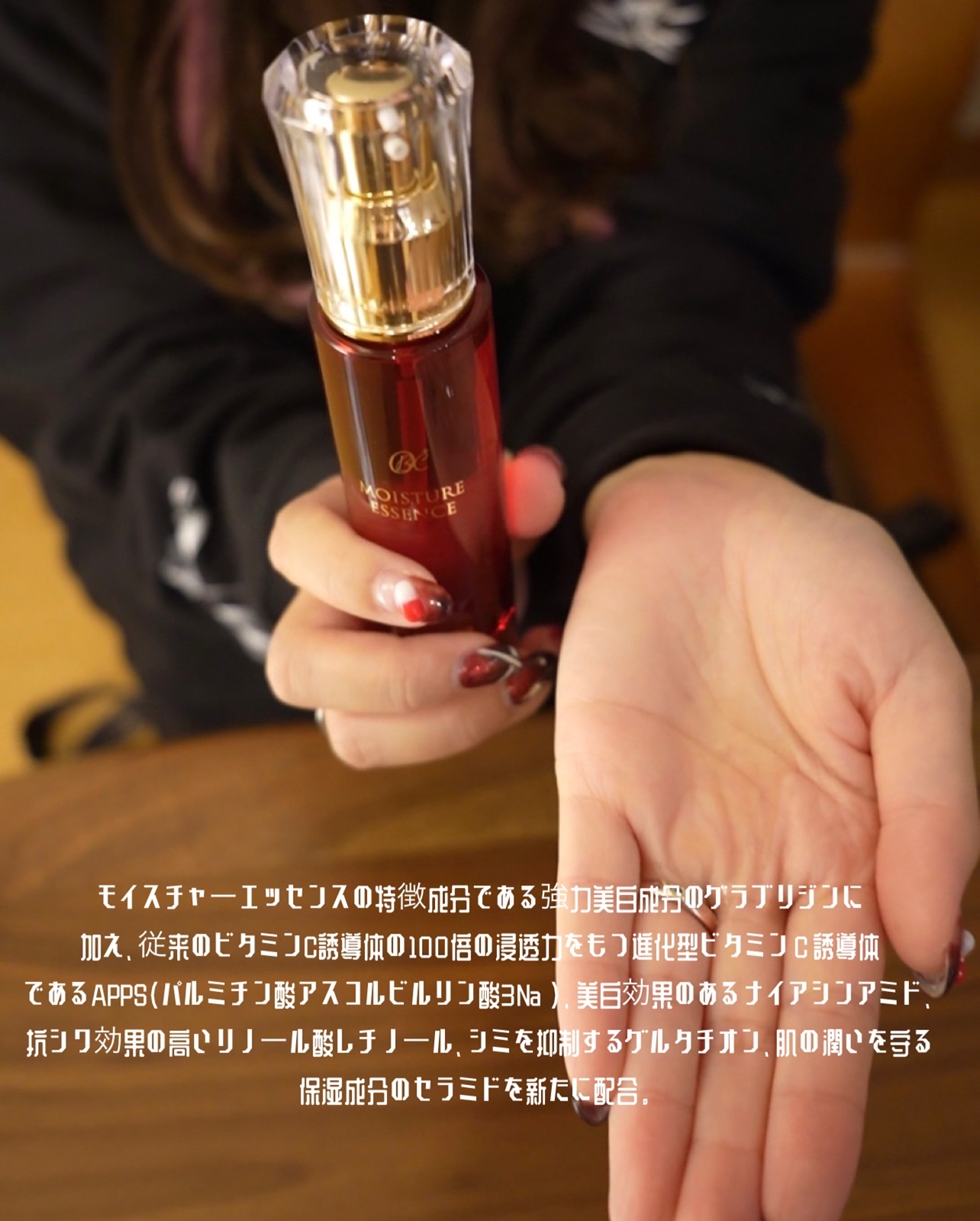年齢による肌悩みをトータルケア モイスチャーエッセンスの特徴成分であるツヤ成分のグラブリジンに加え、従来のビタミンC誘導体の100倍の浸透力をもつ進化型ビタミンC誘導体であるAPPS(パルミチン酸アスコルビルリン酸3Na)、ナイアシンアミド、エイジングサインケア成分リノール酸レチノール、乾燥によるくすみをケアするグルタチオン、肌の潤いを守る保湿成分のセラミドを新たに配合💡 肌にやさしい、5つの無添加 パラベン・鉱物油・シリコン・合成香料・合成着色料フリー トロっとしたテクスチャーで肌なじみがよく、潤うような使い心地です🙆🏻♀️ ベタつかずみずみずしい肌触りが心地好くてお気に入り😍❤️
