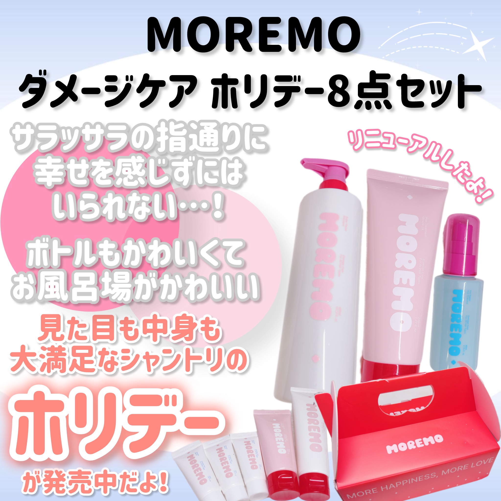 すべてが新しくなったモレモ、リニューアル&新製品で構成されたホリデーギフトセットが現在行われているQoo10メガ割でゲットできますよ♡ モチモチっとした泡で気持ちよく洗えるシャンプー。レモンベルガモッムスクの香りもいい香り! 髪がしっとり落ち着くような使い心地が気に入りましたよ。