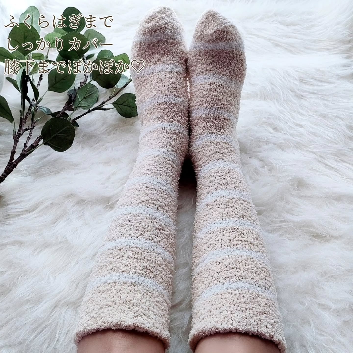 履くだけで足元の温感+3.6℃で、足元からじんわりと温めてくれるよ🥹✨ ふくらはぎまでカバーする長さで膝下までぽかぽかに💓 締め付け感なくふんわり履けて、もこもこで気持ちいいよ🥺🤍