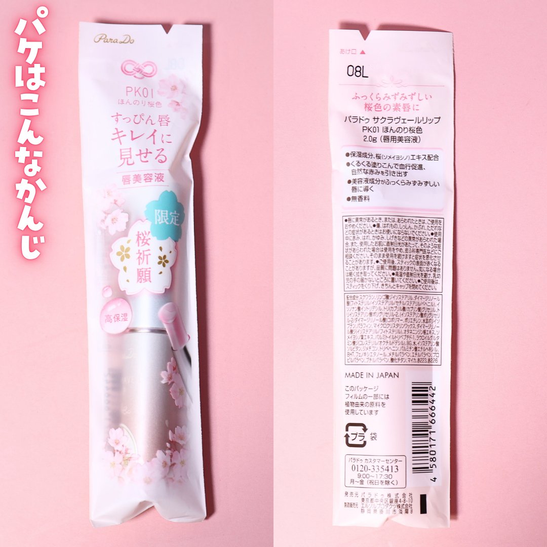 💋手軽に買える!!コンビニコスメ🌸𓊆ྀི𝙋𝙖𝙧𝙖𝘿𝙤𓊇ྀི✔︎サクラヴェールリップ PK01ほんのり桜色🛒𓂃𓈒𓏸𓐍¥770(LIPS調べ)⑅𝐫𝐞𝐯𝐢𝐞𝐰⑅一本で適度な保湿感とナチュラルな血色が得られるのに、さくっとコンビニで買える!デイリー使...