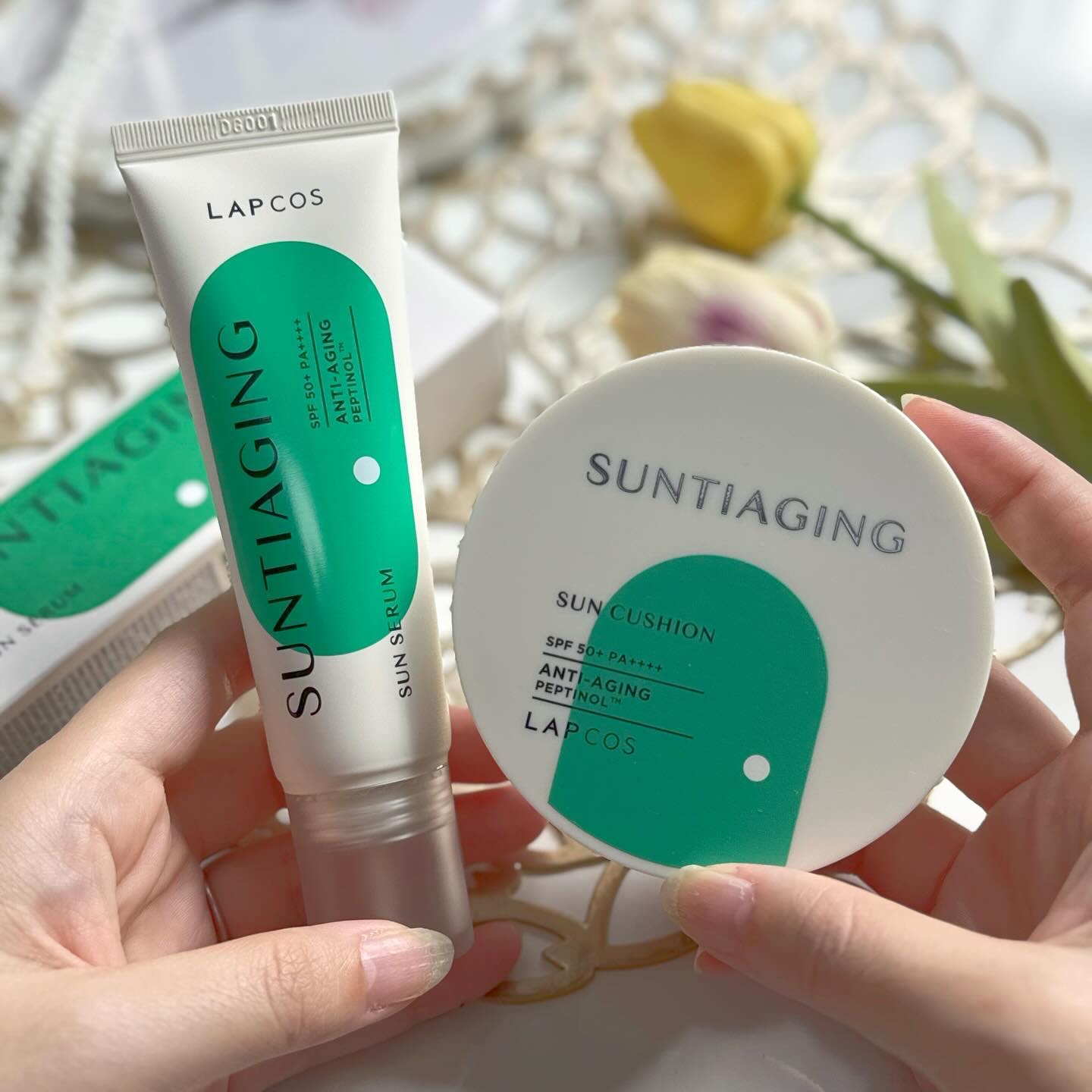 SPF50+ PA++++の強力な紫外線遮断はもちろん、肌のアンチエイジングまで可能な製品✨✨ サンティエイジングサンクッションは、2022年アリュールクリーンピック受賞、2022年ファヘ下半期トレンドアワードのヴィーガンサンクッション/ファクト部門で1位を獲得した製品✨ サンセラムはセラムを塗ったかのように豊富な潤い感としっとりした肌の輝きを与えるマイルドなテクスチャーで、お肌にピタッと密着してくれる💓