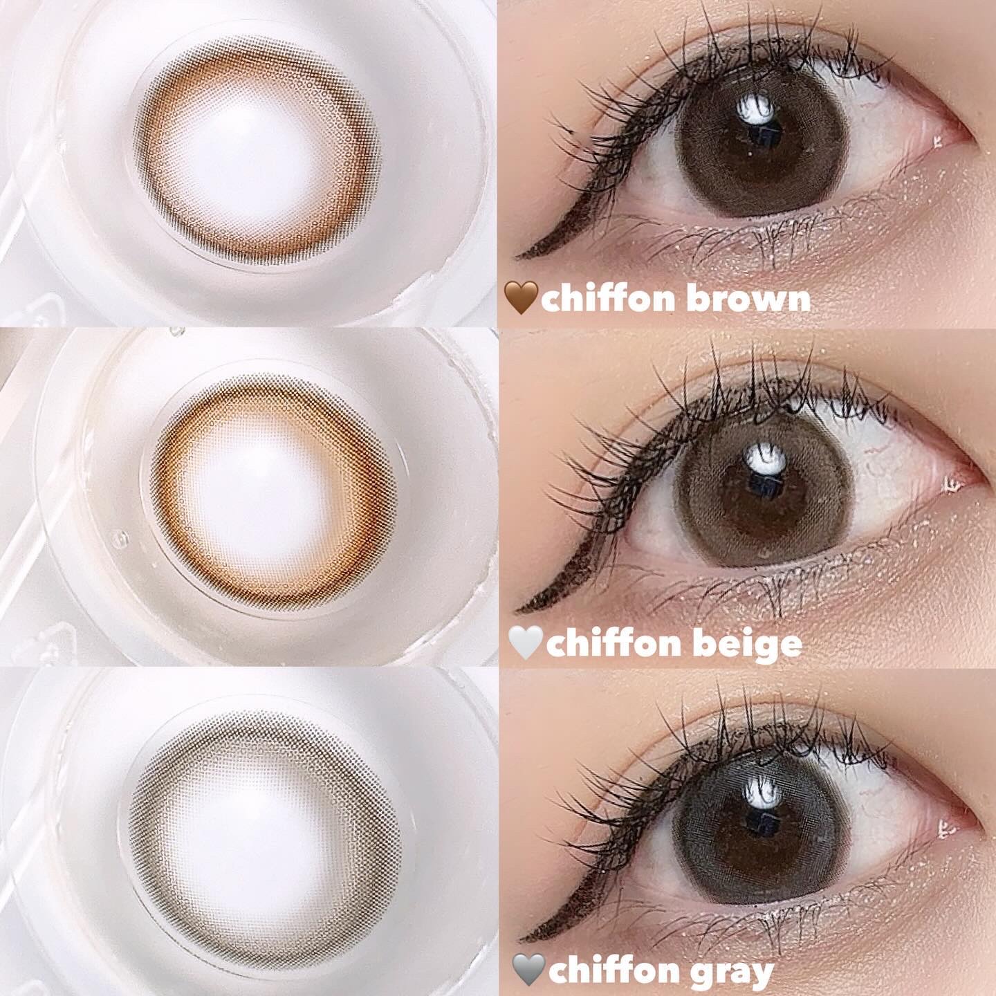 森香澄さんがイメージモデルのカラコン”meilly” DIA 14.2mm/着色直径 13.3mm/BC 8.7mm/含水率 38.5% 🤎シフォンブラウン 見る者全てを惹きつけて離さない魅惑のヌーディー見えの“究極ピュアブラウン” どれも派手すぎずナチュラルで普段使いしやすくてお気に入り✨