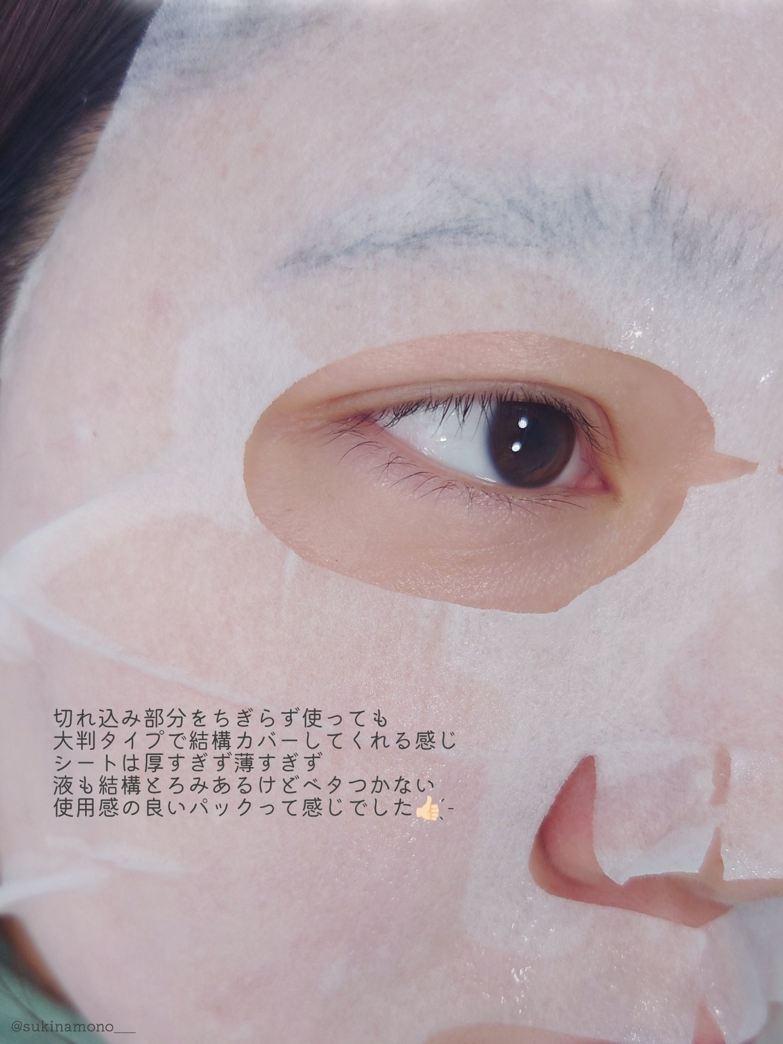 ミシン目で簡単にちぎれるシートマスク✨ 自分の顔に合わせて貼ることができる☑3分だけでOK♡時短になる! ヒタヒタのシートでお肌が潤う✨ 全身使えるくらい液が入っている! 自分の顔の形に合わせてパックができる♡ お肌がモチモチ潤う✨
