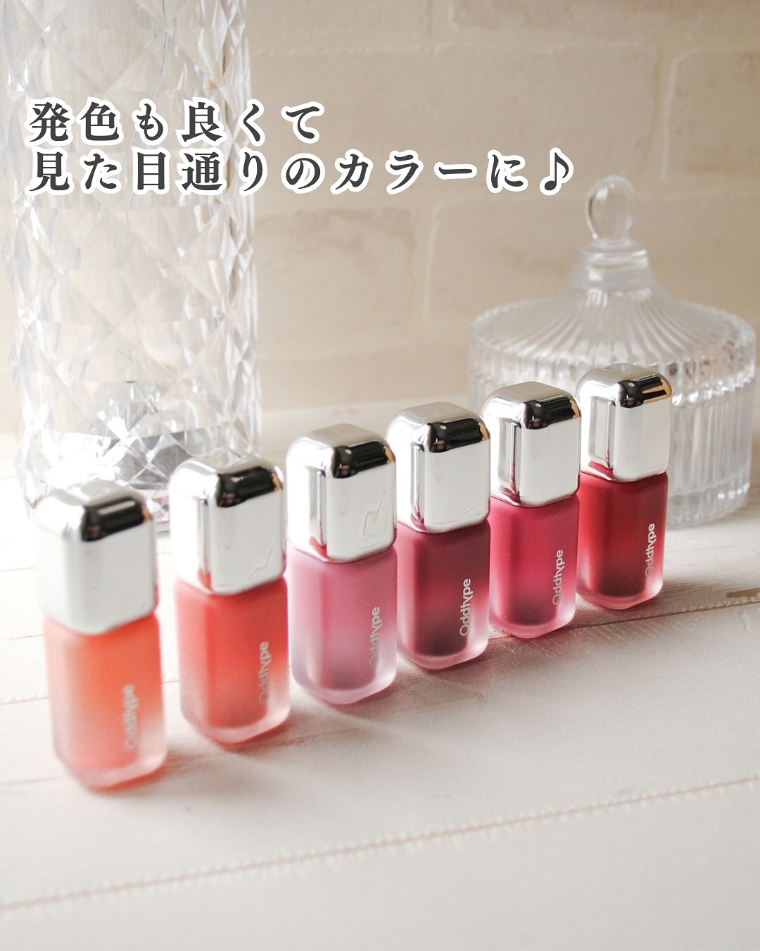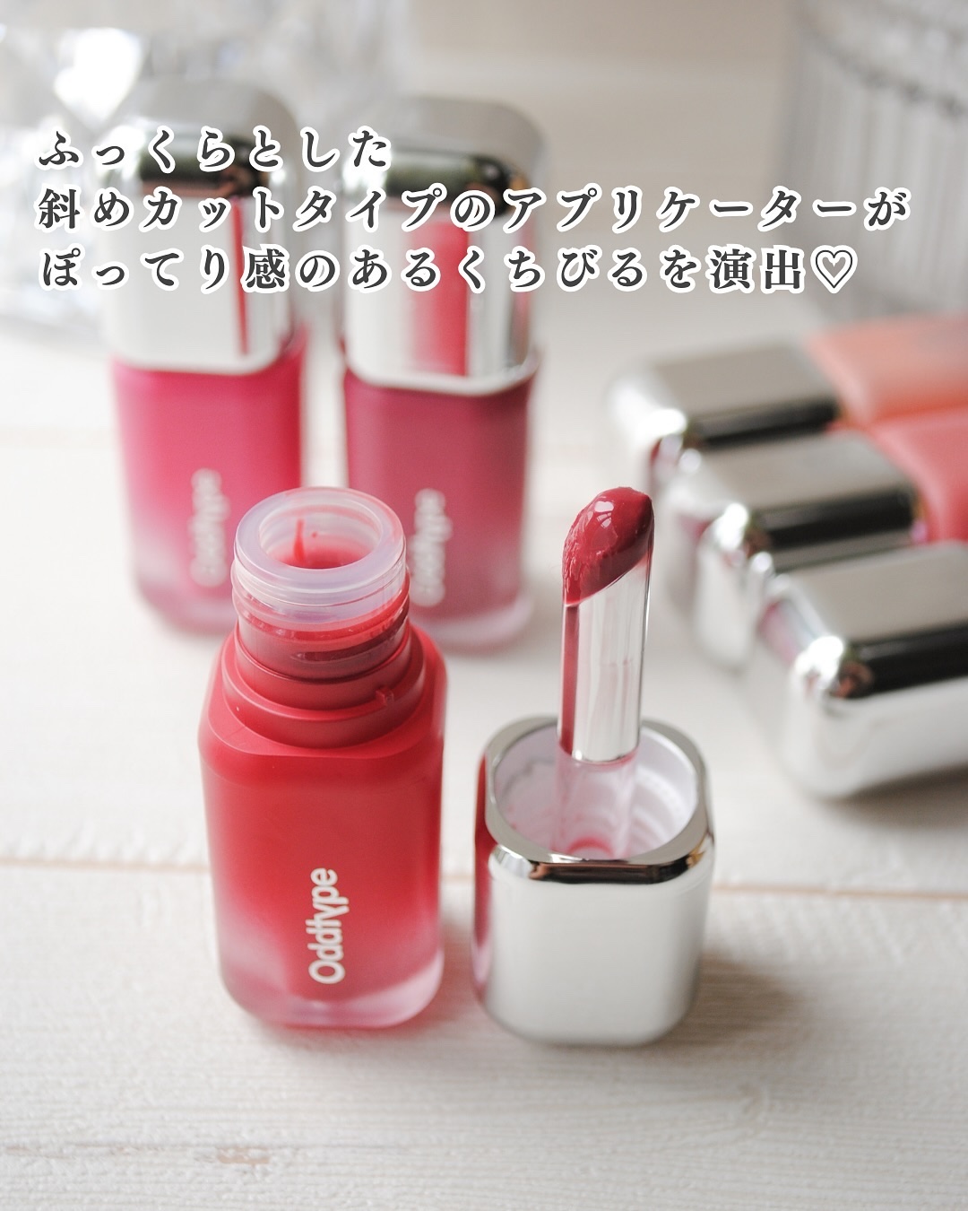 oddtypeは、2024年10月に日本上陸。 あの”MUSINSA”のビューティブランド✨ ボリューム感のあるぷるっぷるの艶ティント💋 斜めカットのブラシが珍しいの! ぷっくりとしたボッテリ感が可愛すぎる…❤️🔥 バラエティショップで購入できるので、チェックしてみてねーー♡