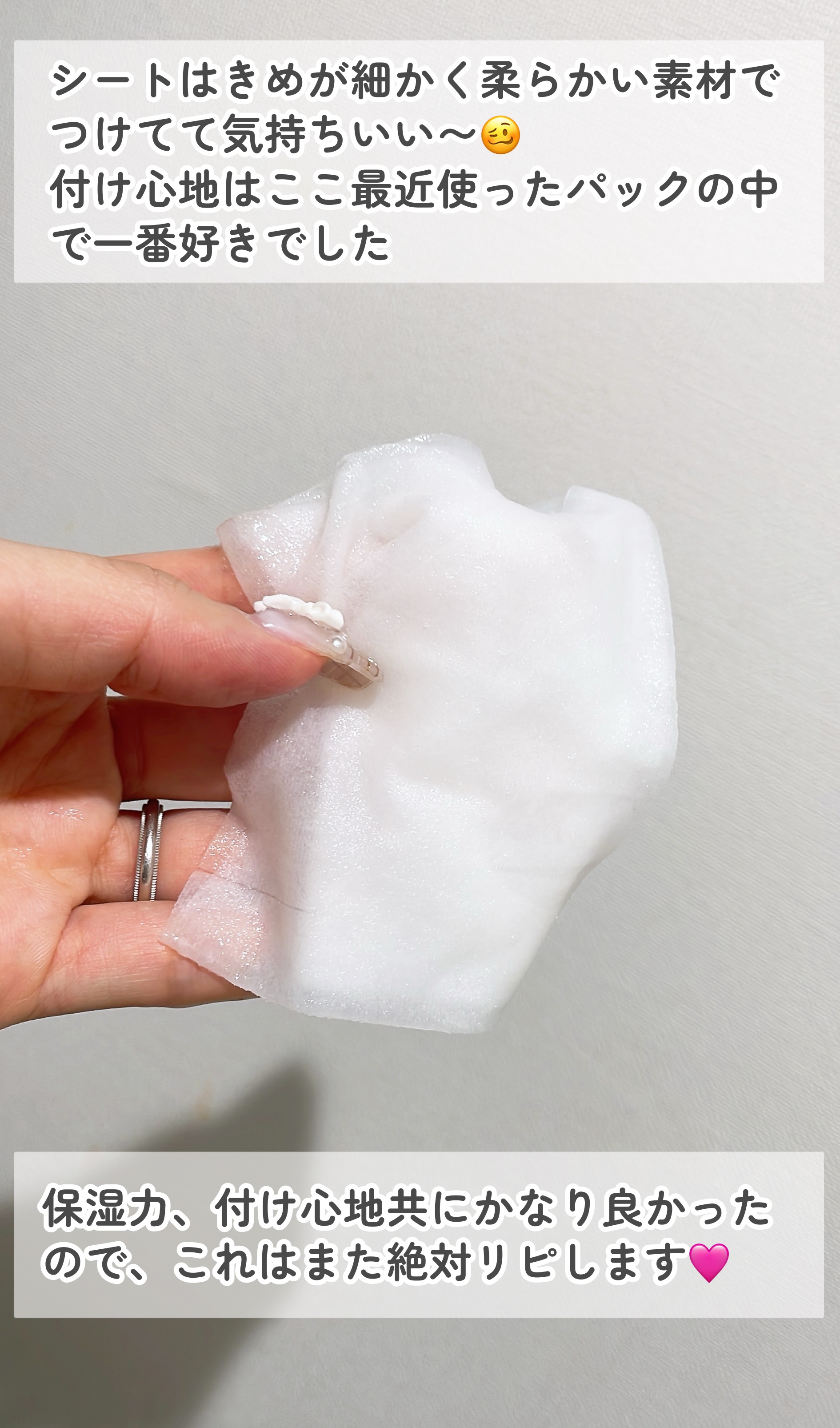| スペシャルケアランキング第48位 | 薄くてとても柔らかめのシートで、皺が出来ても伸ばしやすいので顔にピタッと貼り付けられます😊 ゴワゴワしないのがイイ👍✨ | 詳細を見る |