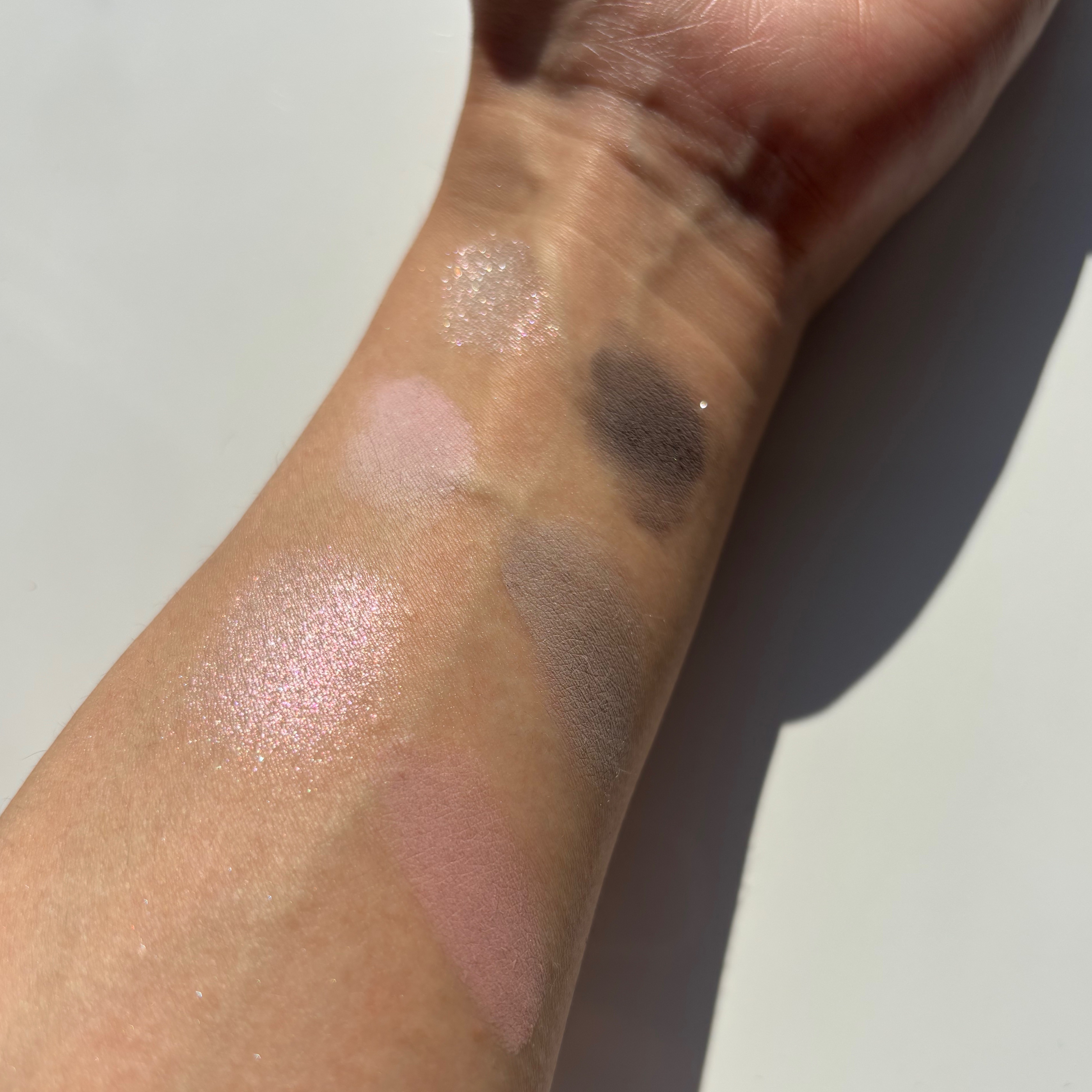 6色のアイシャドウパレット1種とミックスして使えるデュアルチーク2種、多彩なグリッターのハイライター2種💖 アイシャドウのラメはまるで星屑を散りばめたような煌めき˚✧₊ ハイライター、チークは透明感増して可愛い! ホリデーならではの煌めきがとても綺麗です🥹✨