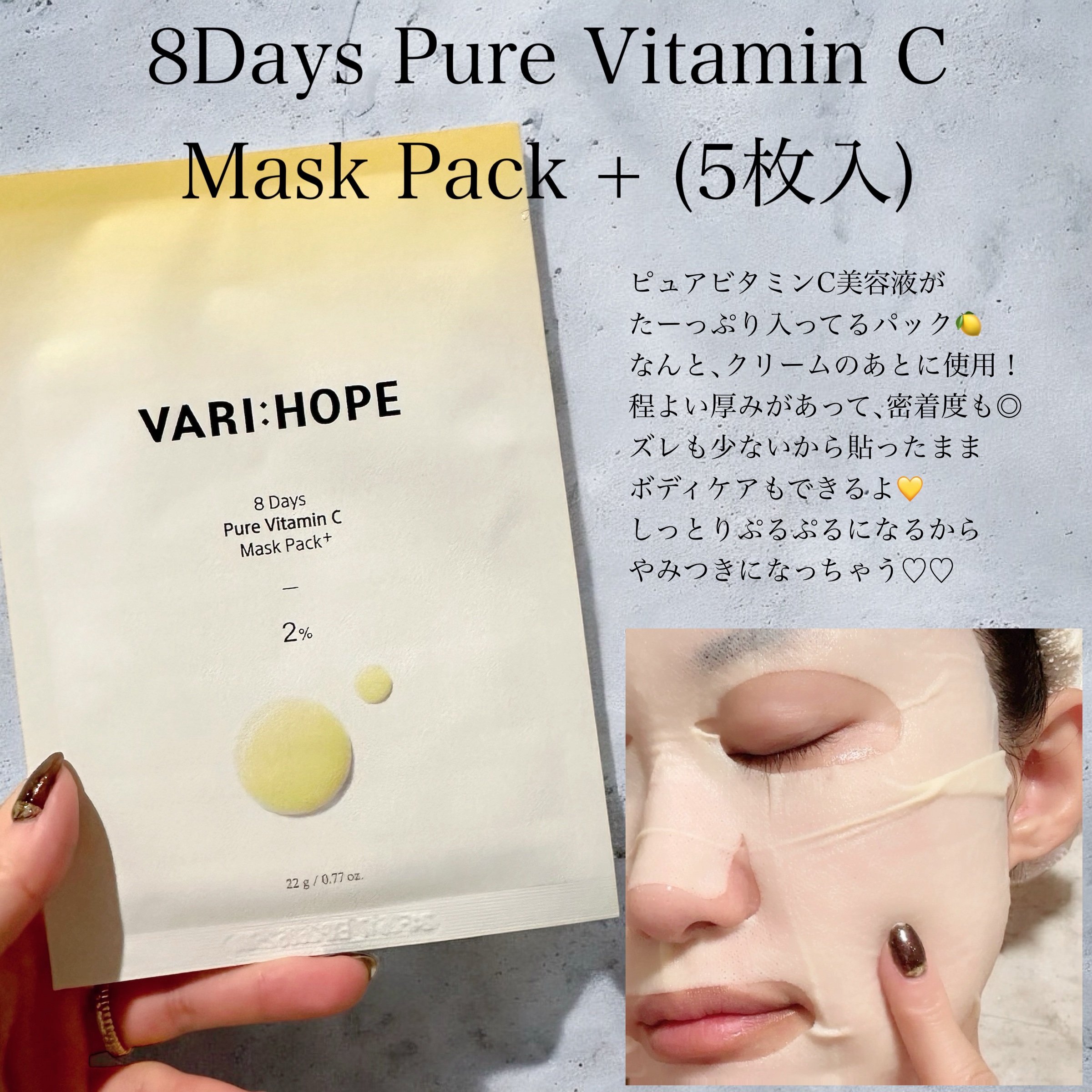 VARIHOPE(@varihope_jp )の白玉セットをお試しさせて頂きました💕 #8デイズピュアビタミンc美容液 #8デイズピュアビタミンcクリーム #8デイズピュアビタミンcマスクパック (5枚入) のセットに、ポーチ、洗顔がおまけでついてくるよ!!お得すぎる!! 水ベースのピュアビタミンC*1配合の美容液。トロッとしたテクスチャーだけど伸びも良くて浸透も早かった!!韓国で累計200万本以上累計販売のある人気美容液!! ビタミンC美容液たっぷり入ってるマスクパック! これさ、クリームの次に使用するのよ!