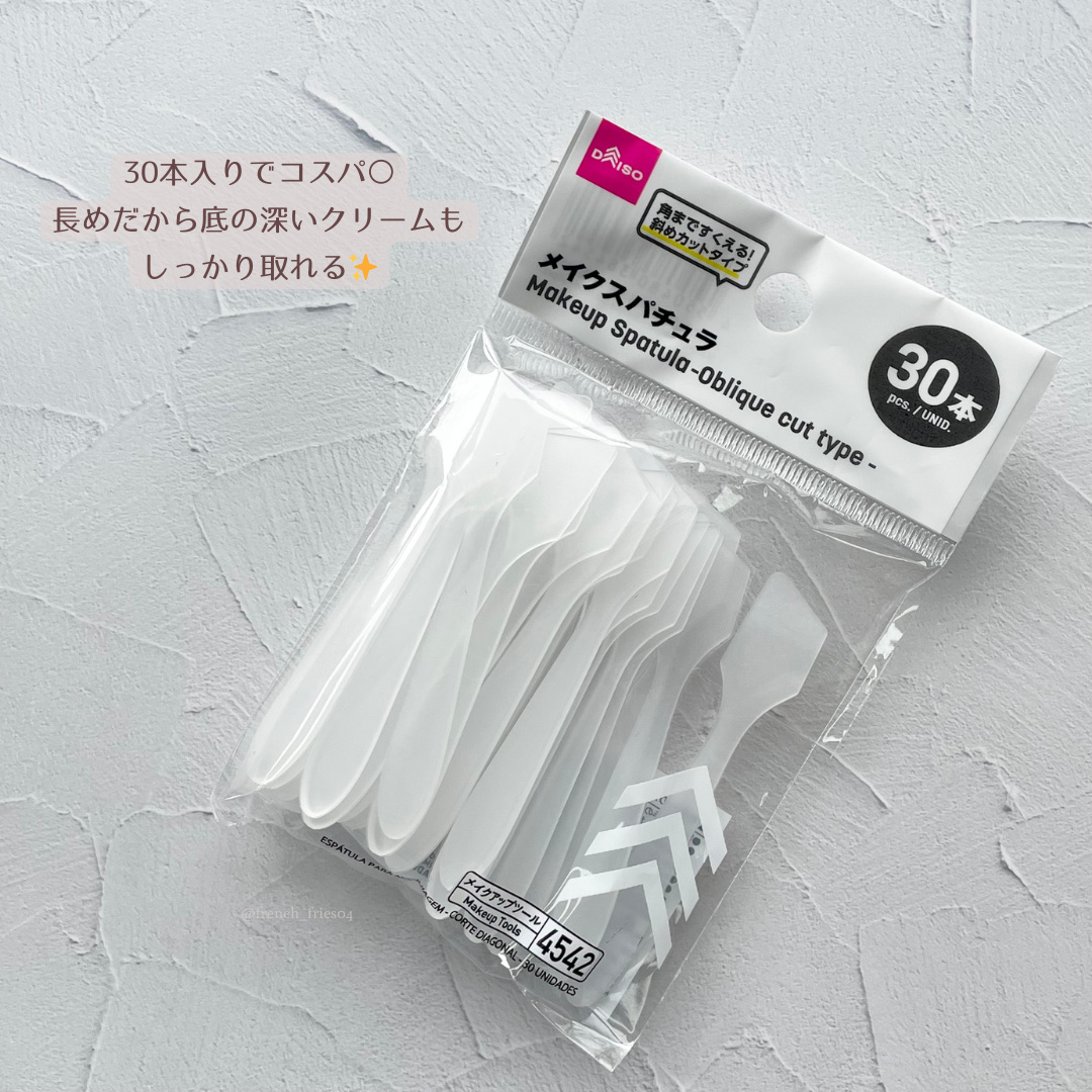衛生的に使える!ダイソーの優秀スパチュラ✨【商品】メイクスパチュラ【使用レビュー】クリームやバームをすくう時に指を使わずに済むので、とても衛生的!先端がちょうどいい薄さで、少量でもすくいやすく、スキンケアやベースメイクのときに活躍しています🙆...