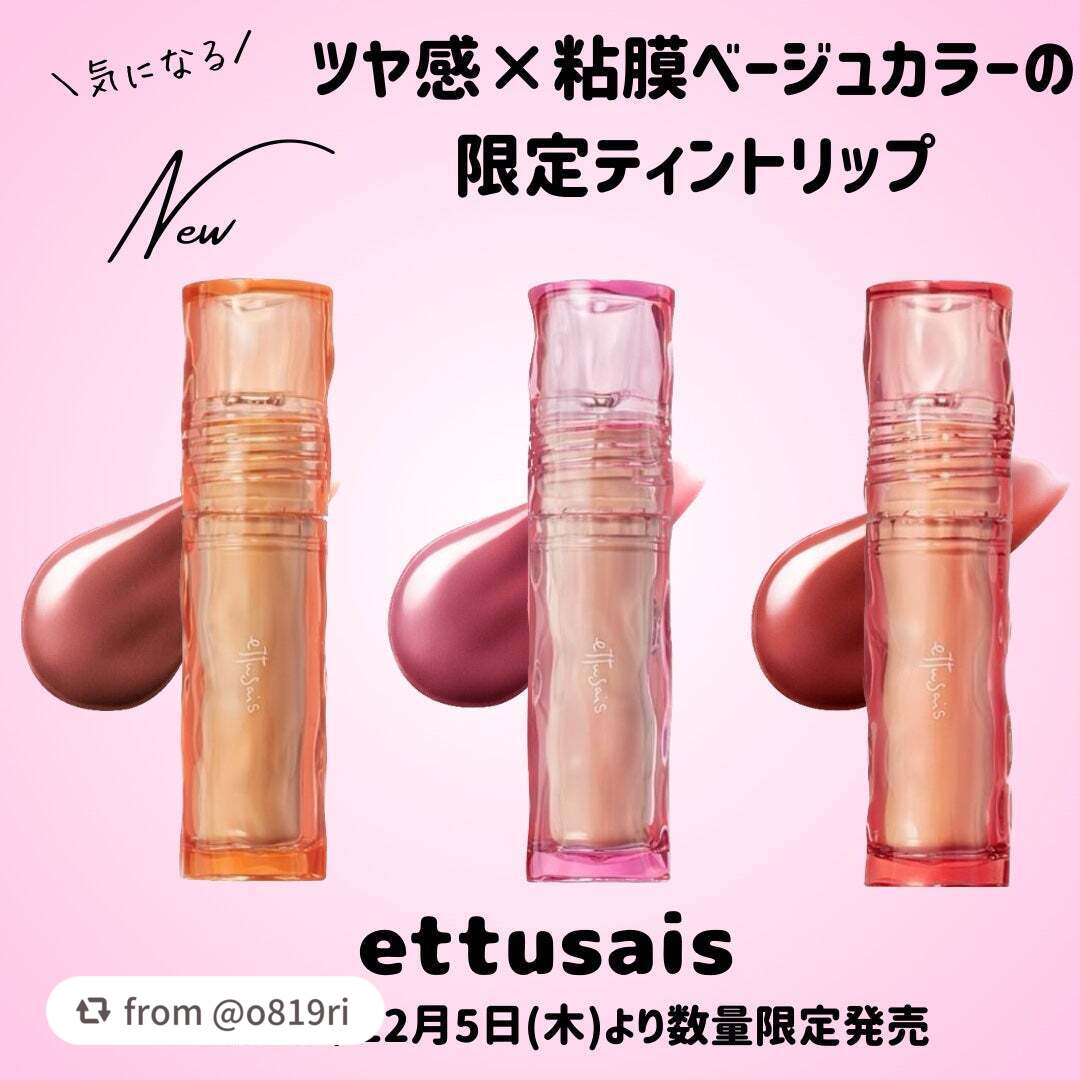本日3/14、限定発売!「エテュセリップカラー」5色 1,500円(税抜)肌色のトーンアップも叶える、うるおうティントリップ。天然由来の美容オイル配合。(スクワラン、ローズヒップオイル、ホホバオイル/エモリエント成分)透け感のあるシアーな色づ...