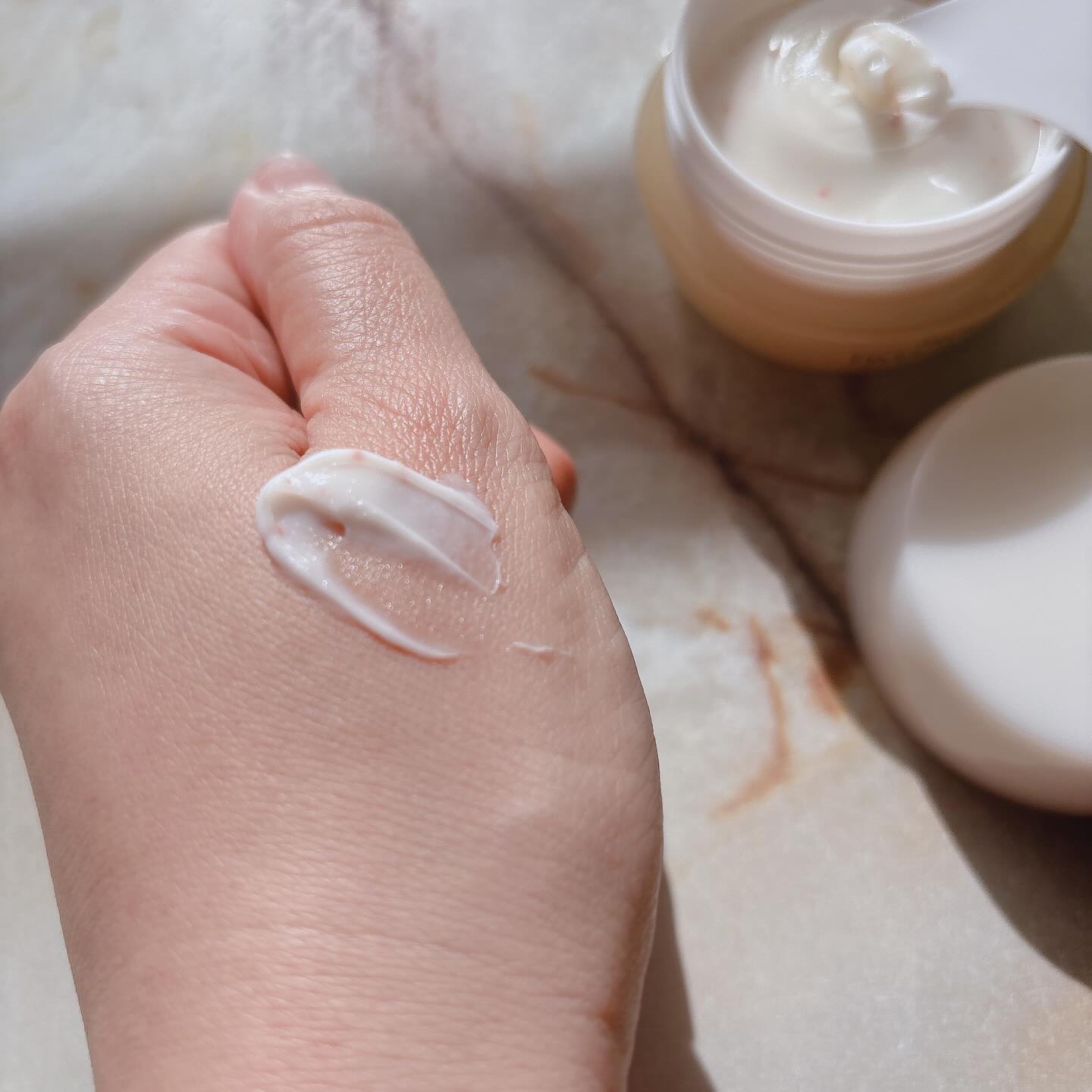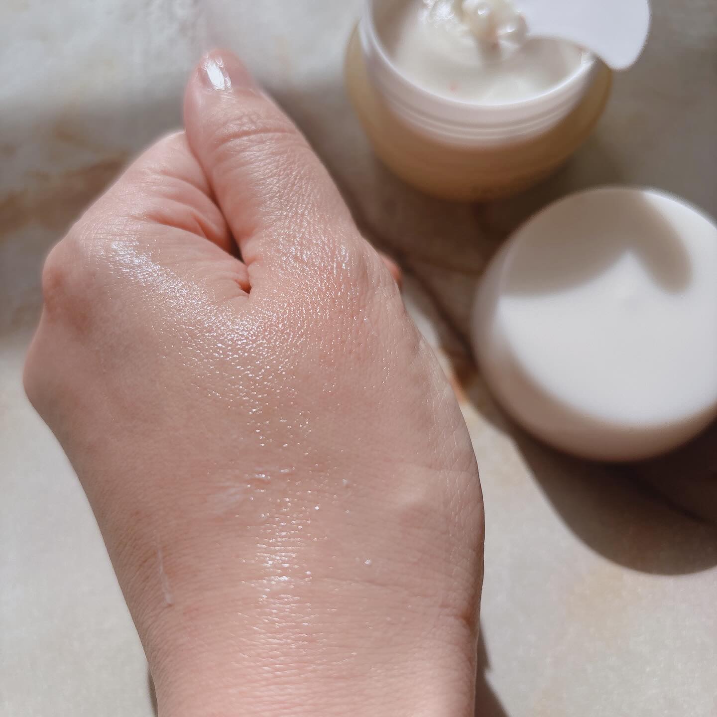 救世主の高保湿クリーム🤗 乳白色の柔らかめクリーム オレンジのプチプチが入ってて、これがビタミンオイルカプセル※2 オイルが体温でトロっと溶けてオレンジ色のカプセルが自然に一体化🤲