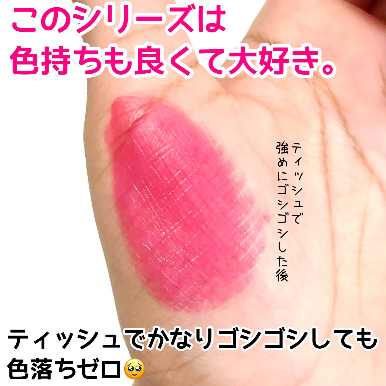 | 口紅・グロス・リップライナーランキング第56位 | めちゃくちゃ塗り心地が軽いのに、色のせてすぐティッシュOFFしても色がめっちゃ残る!! | 詳細を見る | |