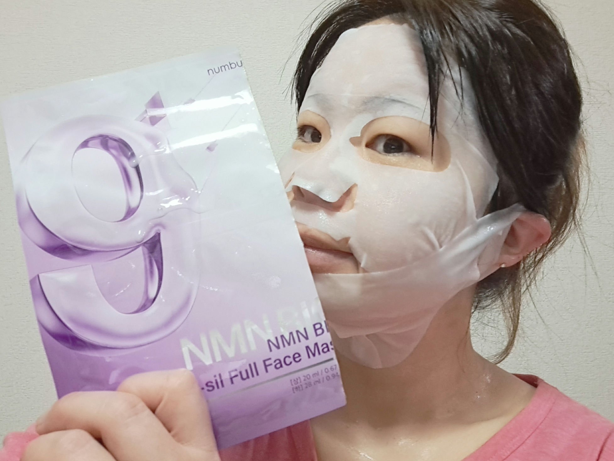 肌悩みごとに選べるナンバーズイン 番号が振られていて、自分の肌悩みに合わせて選ぶことができるよ☺️ NMN BIO圧縮カプセルがカサついた肌にうるツヤを、溶ける糸PLA高弾性シートでむくみまでスッキリさせるフルフェイス3Dシートマスクとのこと✨ シートはたっぷりエッセンスが含まれており、はがした後はしっとりつるつるで大満足でした。