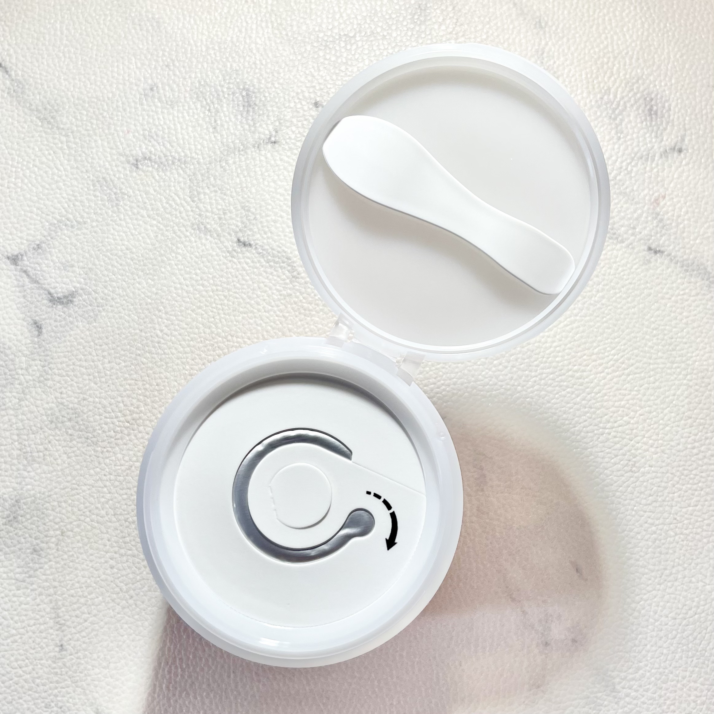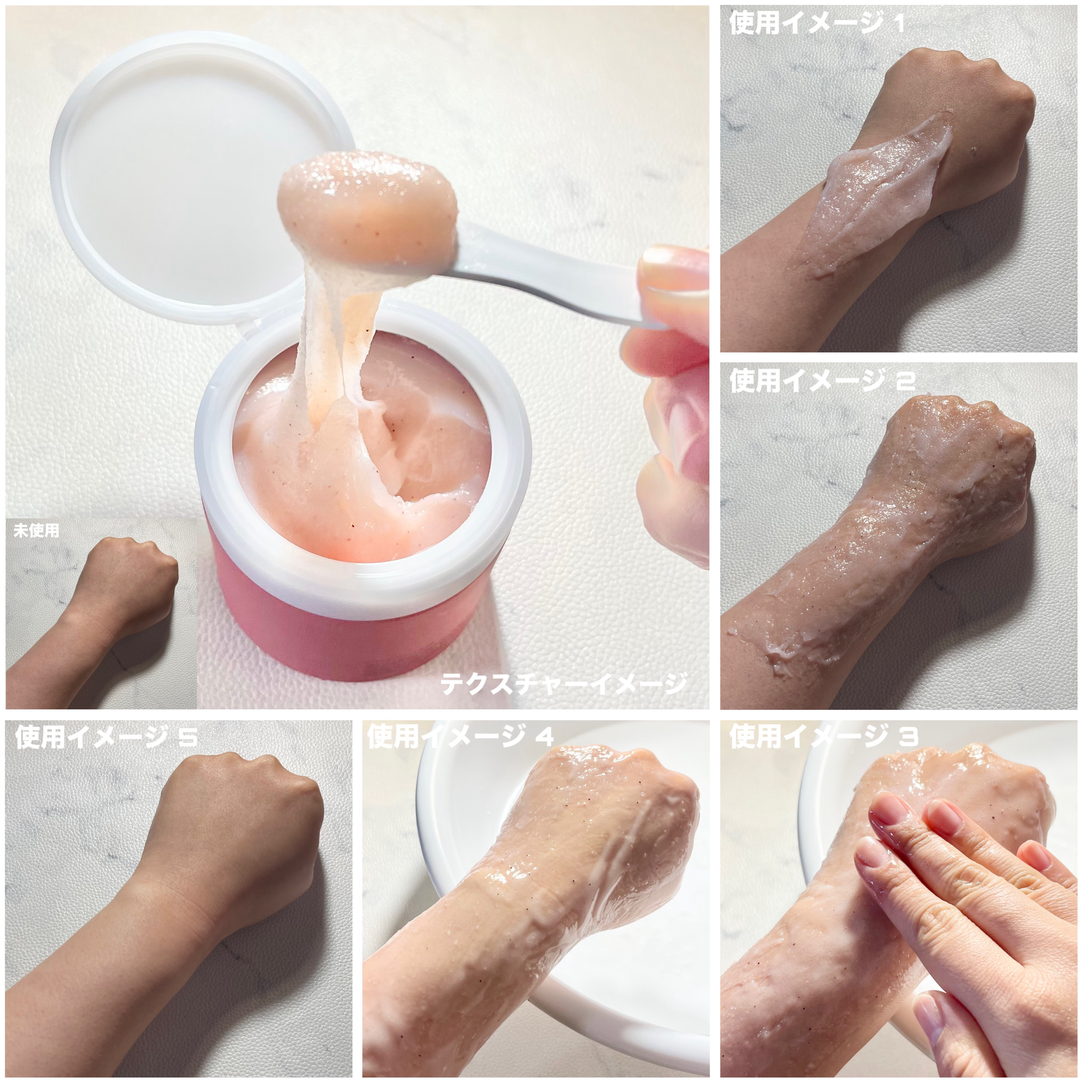 質感はジェラート+お餅みたいなジェラもちテクスチャーで伸びーる!!見た目は完全桜もち🌸きゃわ💕 細かな角質ケアと保湿力に特化してて使用してるとだんだんポカポカ温かくなってくるよ❤️🔥 香りがたまらん!ピーチブリーズという香りなんだけど私はベリー系に感じたよ🍓🫐