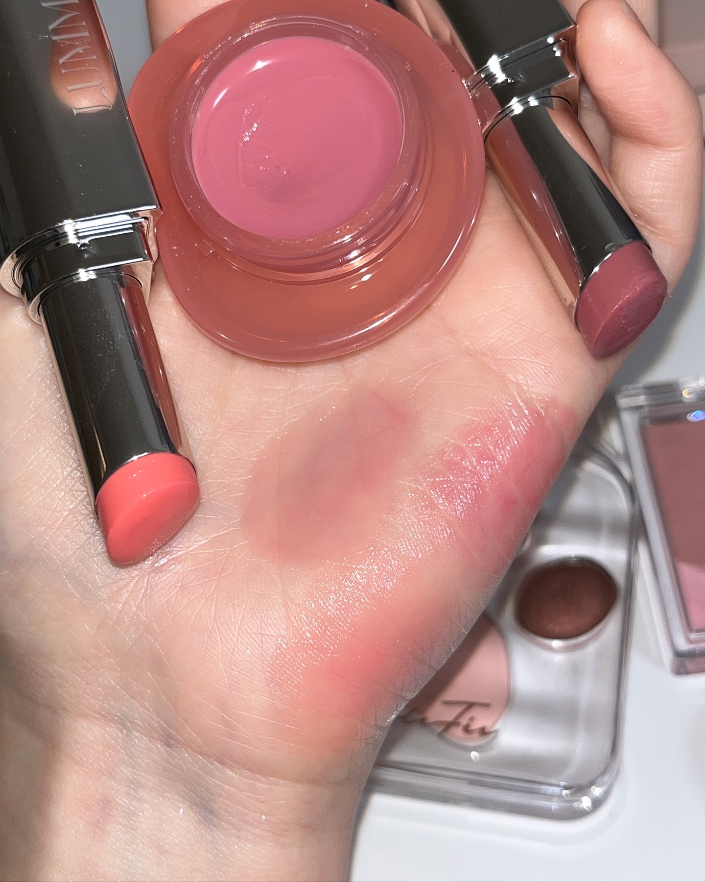 新作も含めて毎日のように使っているコスメをおすすめします!提供いただいたものを含むけどガチの愛用品🫶🏻💖 #フェイスパウダー @wakemake_japan #リップアンドチーク @fwee_makeup_jp #ティントリップ @hince_official_jp フォローで最新コスメを先取り👀