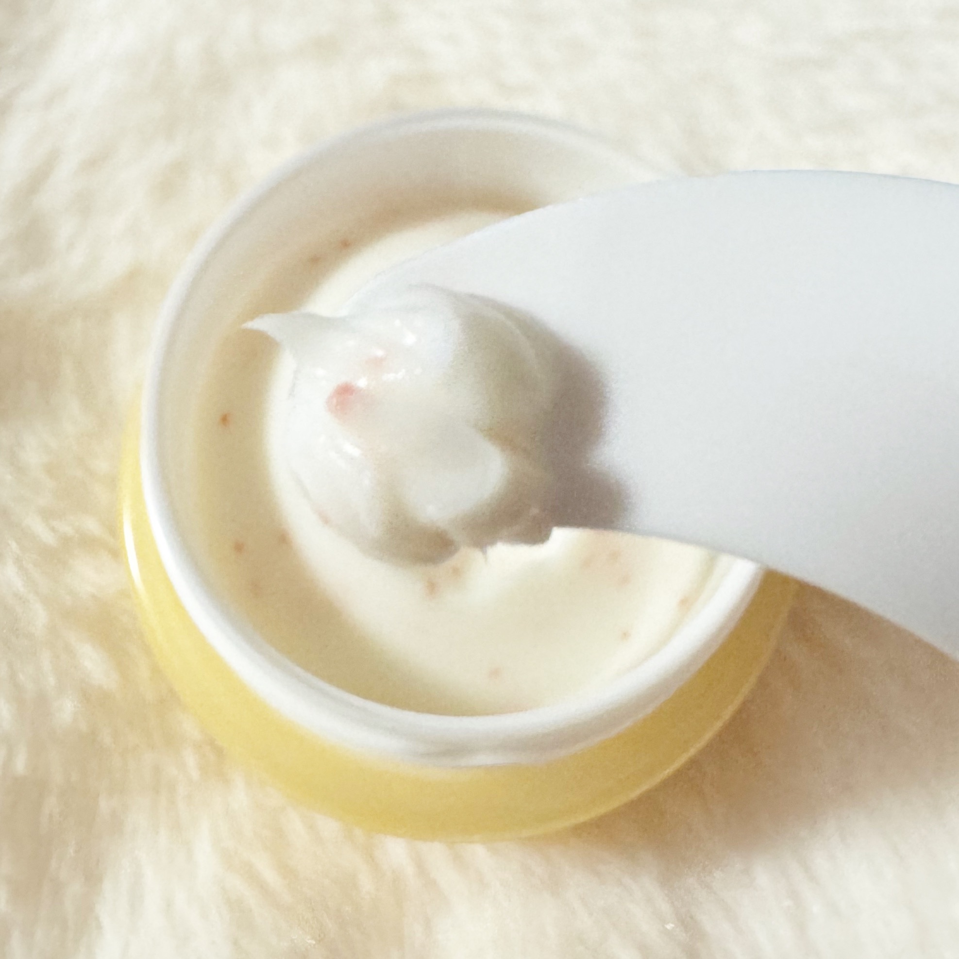 今話題のアゼライン酸*が20%も配合されているそうです。毛穴詰まりを解消、皮脂の分泌を抑制、抗菌、抗酸化、メラニンの生成を抑制などの効果があって、刺激の少ない天然成分。 やわらかめなテクスチャーの真っ白なクリームで、少量でものびが良く、付けた後がベタつかないのでほかのスキンケアとも相性良く使うことができています。 肌の水分と油分のバランスを整える効果もあるので、朝に使用するとメイク崩れも防いでくれるとか。