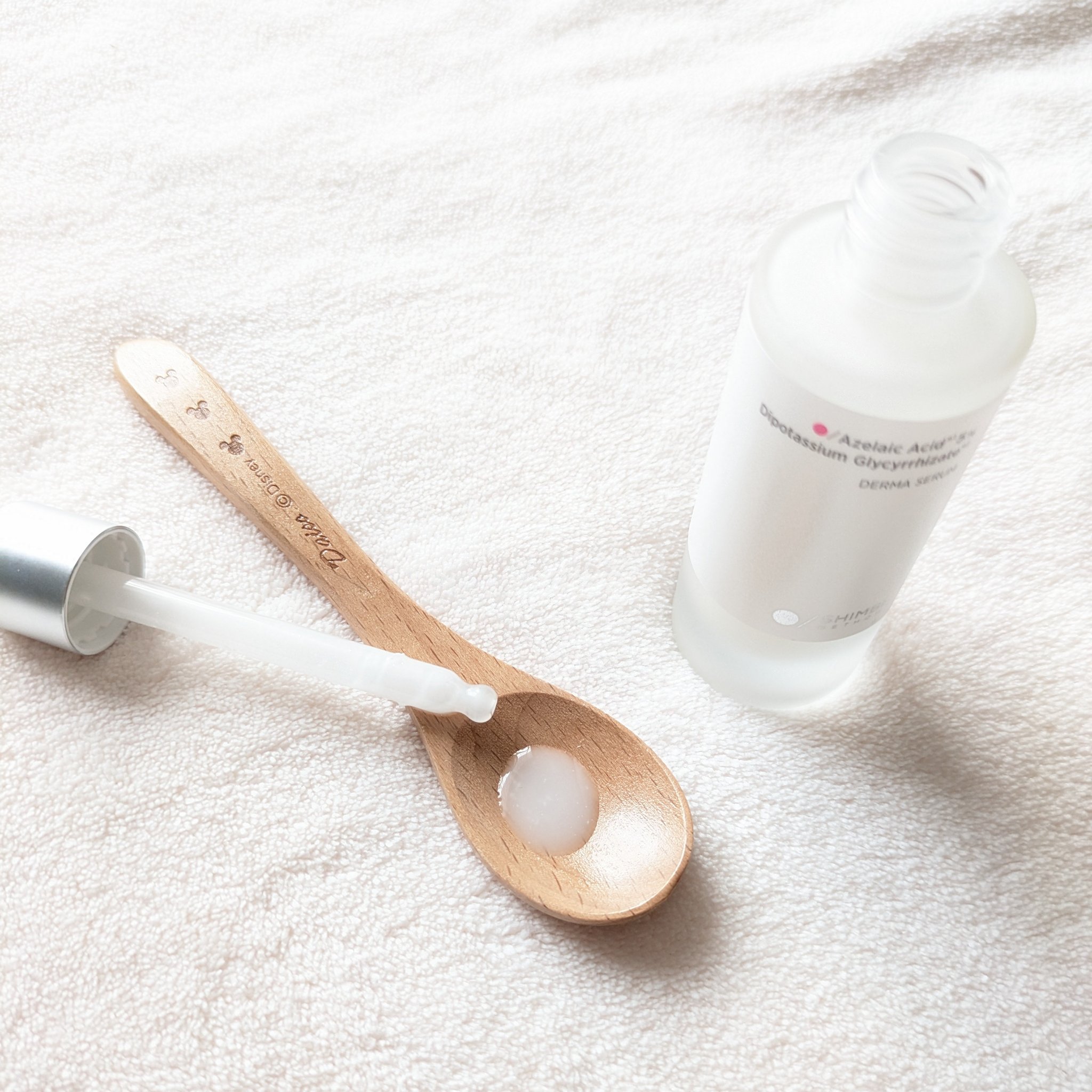 - <ダーマセラム アゼライン酸5%> 水、PG、エトキシジグリコール、アゼライン酸、パルミチン酸エチルヘキシル、ペンチレングリコール、ステアリン酸グリセリル、ポリアクリレートクロスポリマー-6、シクロヘキサン-1,4-ジカルボン酸ビスエトキシジグリコール、ポリソルベート60、グリチルリチン酸2K、1,2-ヘキサンジオール、カプリリルグリコール、EDTA-4Na、加水分解ローヤルゼリータンパク、コンフリー葉エキス、BG、水酸化Na、フェノキシエタノール