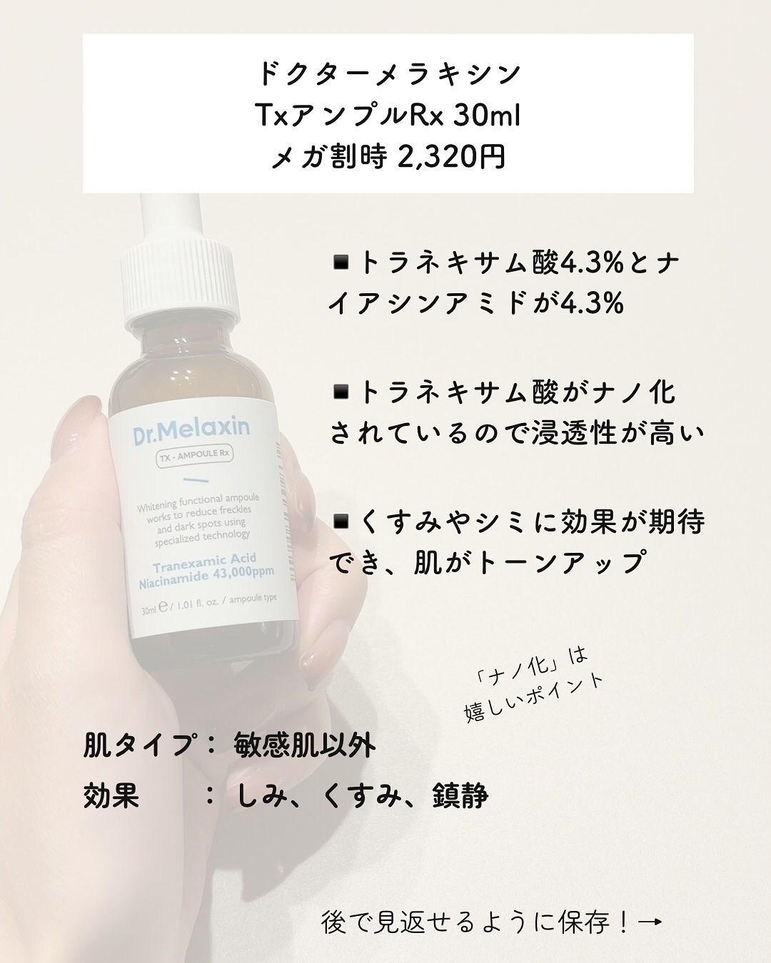 🫧しみ・美白ケアにおすすめ🫧#DrMelaxinTX-AMPOULE-RX+TX-CREAMシミやくすみが気になる方にぴったりのスキンケア✨美白ケアに欠かせないトラネキサム酸をナノ化し、より浸透しやすく開発されたドクターメラクチンのTXシリー...