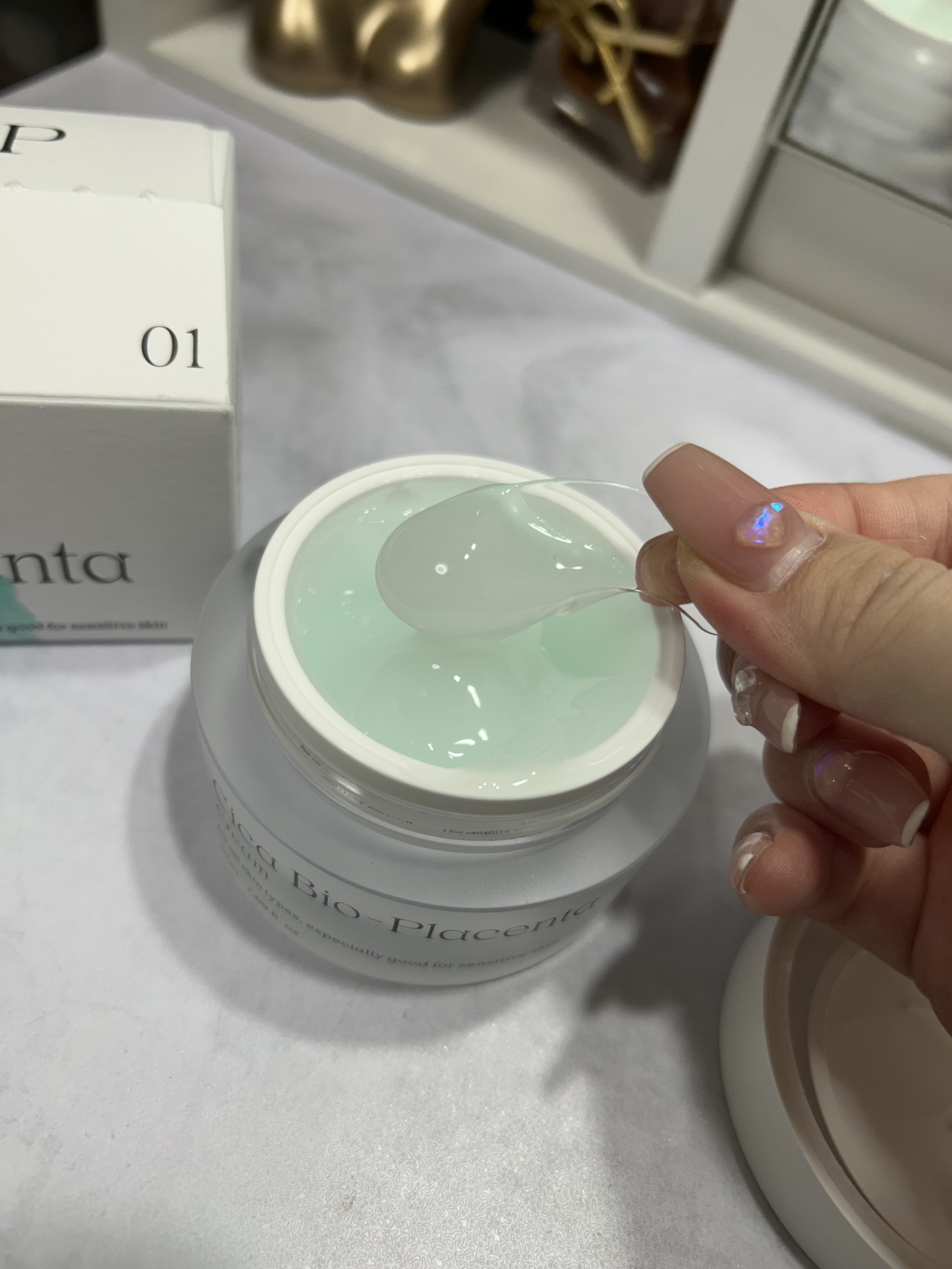 トラブル肌のための水分鎮静クーリングシカバイオプラセンタクリーム🫧 シカ、バイオプラセンタ成分で敏感になった肌を迅速に鎮静 みずみずしいテクチャーで伸びがよくて塗ったところからひんやり🫶🫧 ベタつかないから朝も夜も使いやすい☺️✨