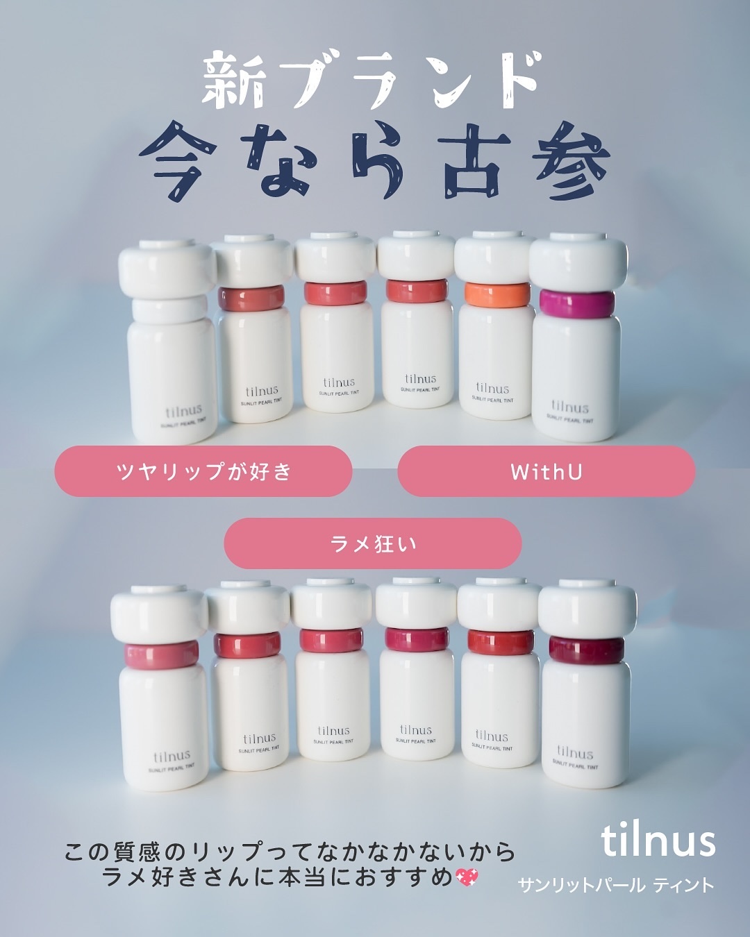 ラメ狂いはこれ好きだよ👍🏻⋆⋆tilnus(@tilnus_jp)サンリットパールティント⋆⋆どの色もラメがキラッキラなのに変に浮いた感じがしないのがすごい……🥹🫶🏻オンライン売り切れてたらしいからお店で見つけたら買い👌🏻#tilnus#ti...