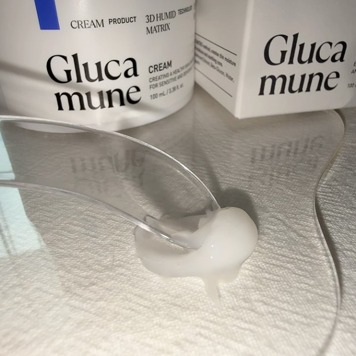グルカミューンラインはシロキクラゲ由来成分をメイン成分としていて、水分チャージをしてくれるから超乾燥肌さんと超敏感肌さんにおすすめ! エッセンスもクリームもみゅーんと伸びるテクスチャーだけど、ベタつかずにしっとり潤ってくれるのが好き💕 シートが薄いからピターっと密着してプルプルのお肌にしてくれたよ✨