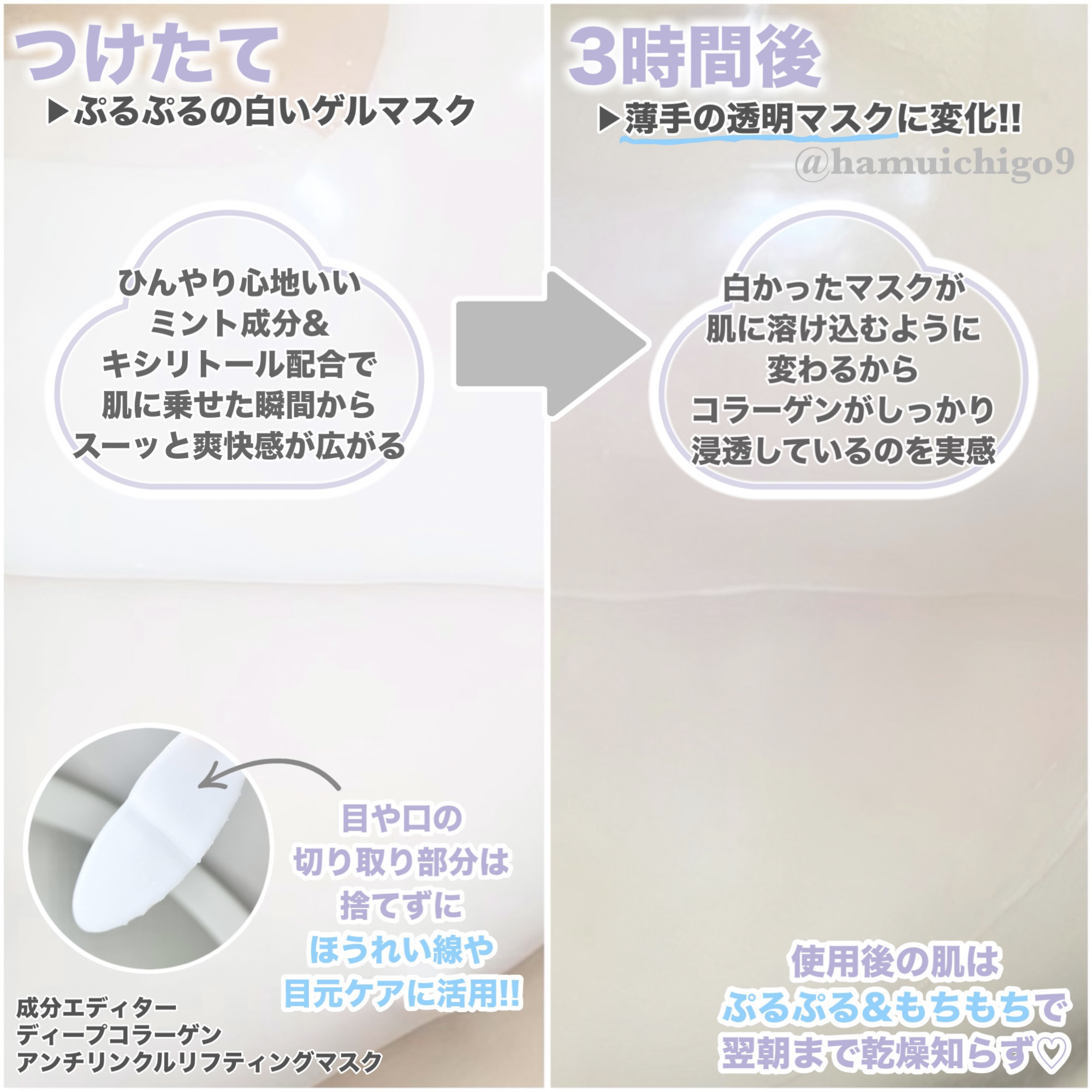 | とろみのあるマスクは薄くてお肌にピタッと密着して しっかり保湿されている感じがしました🙆 | 詳細を見る | ||
