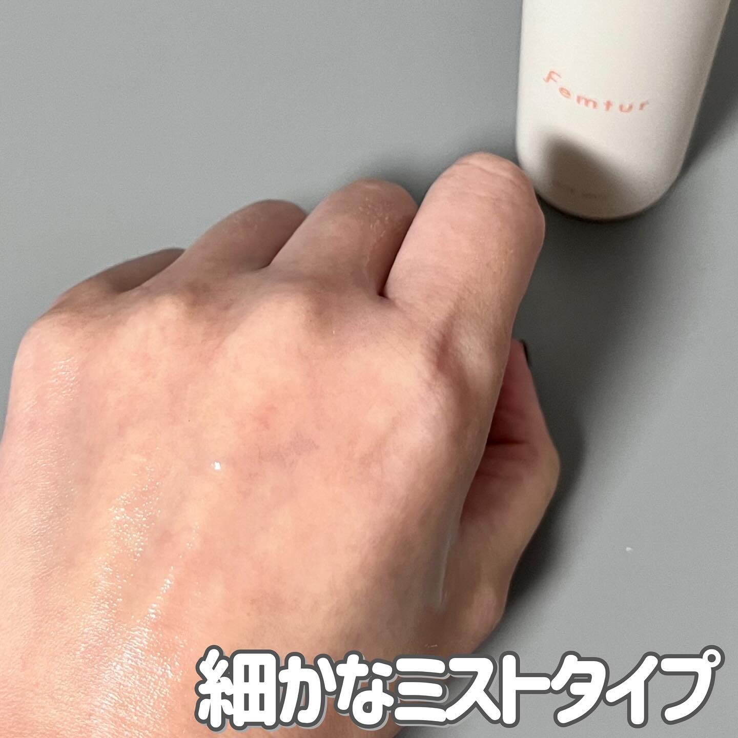 - フェムチャー ミルクミストは、デリケートゾーン用ミスト(スキンローション)です。 外出先での不快感やにおいが気になったときに使えるコンパクトサイズ。 デリケートゾーンの常在菌をサポートする「乳酸菌※」と、「クロレラエキス」「ENBコンプレックス」を配合。 さらに、デリケートゾーンのpH値に合わせた弱酸性設計にすることで、デリケートゾーンの適切な肌状態を目指します。 化粧水のようなさっぱり感と乳液のような保湿力の両方を兼ね備えたウォータリーミルク設計を実現。 また、逆さにしても使える容器を採用。 「清浄効果」と「肌荒れを防ぐ効果」のあるチャ葉エキスと、爽やかに香るベルガモット&ネロリの香りで、ムレやすいデリケートゾーンのにおいを手軽にケアすることができます。 ※乳酸桿菌