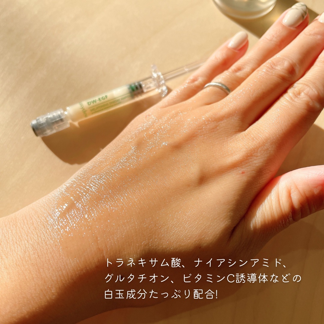 創業75年以上の歴史がある韓国のトップクラス製薬会社“大熊製薬(デウンセイヤク)”が30年以上の研究で生み出し、病院化粧品として始まったブランドさんです。 DW-EGF ワンデイ アンプルは、200万個の販売数を突破したそう!すごい:sparkles: 水のようなシャバシャバした化粧水で、ベタつき感はなくしっとりする感じがします。