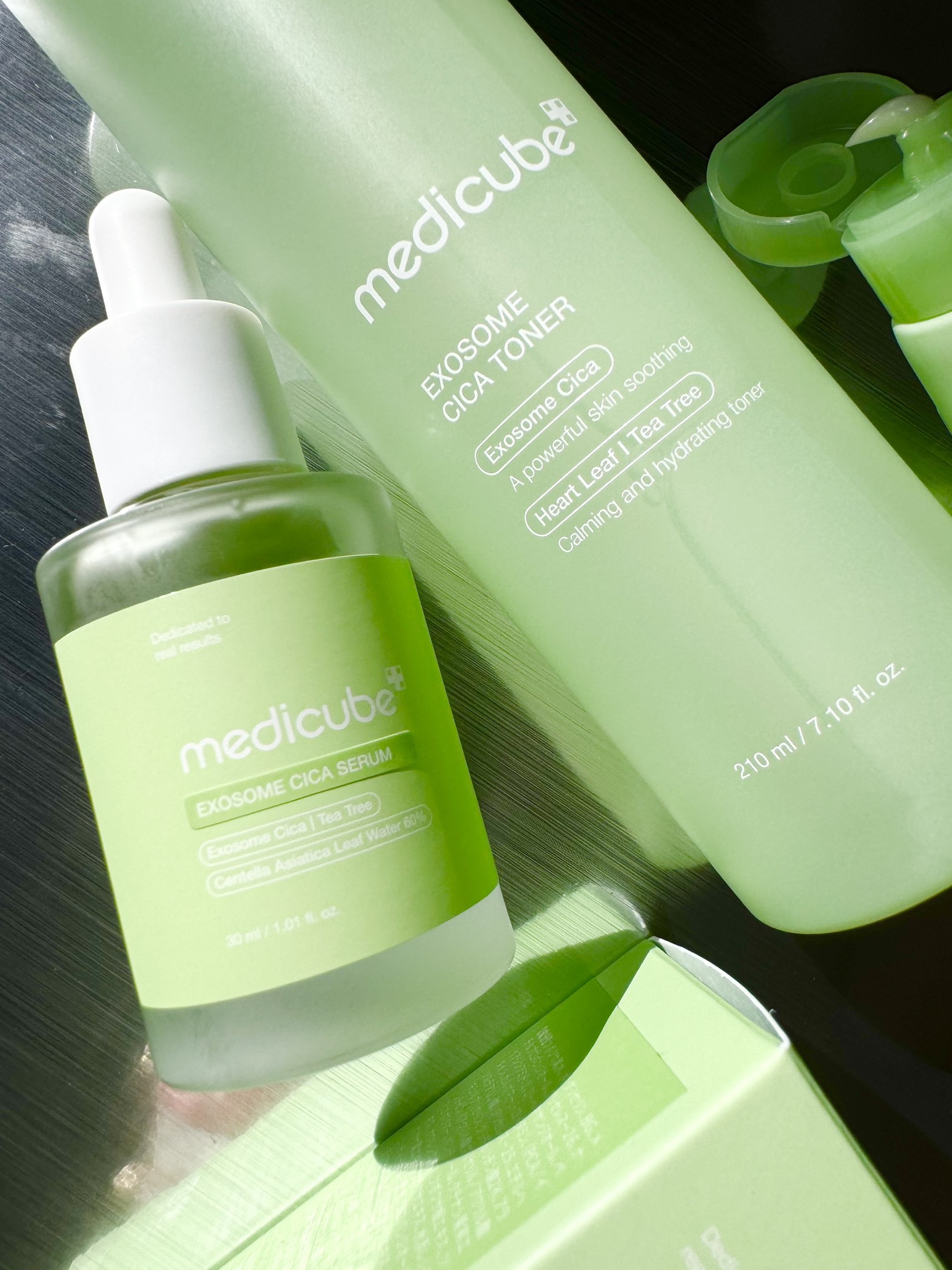 エクソソームシカは、ツボクサで鎮静効果が最も強い成分🌿 medicubeのエクソソームシカは毛穴の510倍小ささ😳! 毛穴の隅々まで届くから5.3倍の鎮静効果に期待できちゃうんだそう👏🏻 とろみのあるテクスチャー💫 うっすらとしたグリーンカラーがパケと良い感じに合ってます🌱 人工色素&人工香料無添加なのも嬉しいところ🙆🏻♀️ みずみずしいジェルクリーム🩵 なめらかなテクスチャーで伸びが良かったです👌🏻 軽めの使い心地で性別問わず使いやすいと思います🌸