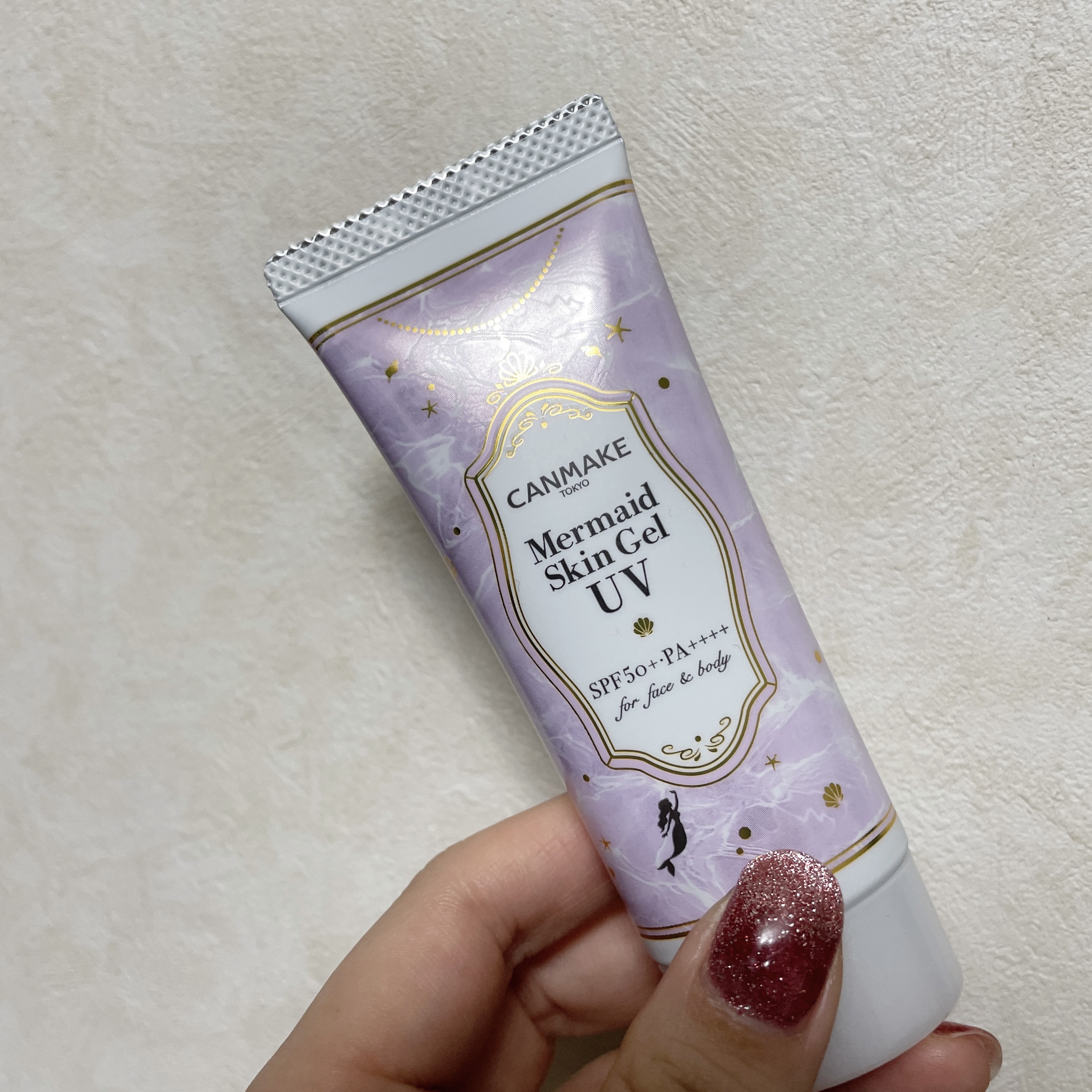 顔と首の色を揃えるのにぴったりなアイテム✨ この2つがマーメイドスキンジェルUVの中でも特に肌をトーンアップできると思います! 塗り心地、日焼け止め効果、コスパ、色々な面でとても優秀✨✨ 顔と首の色のチグハグに悩んでいる方はマーメイドスキンジェルUVを首に使うのがおすすめです╰(*´︶`*)╯