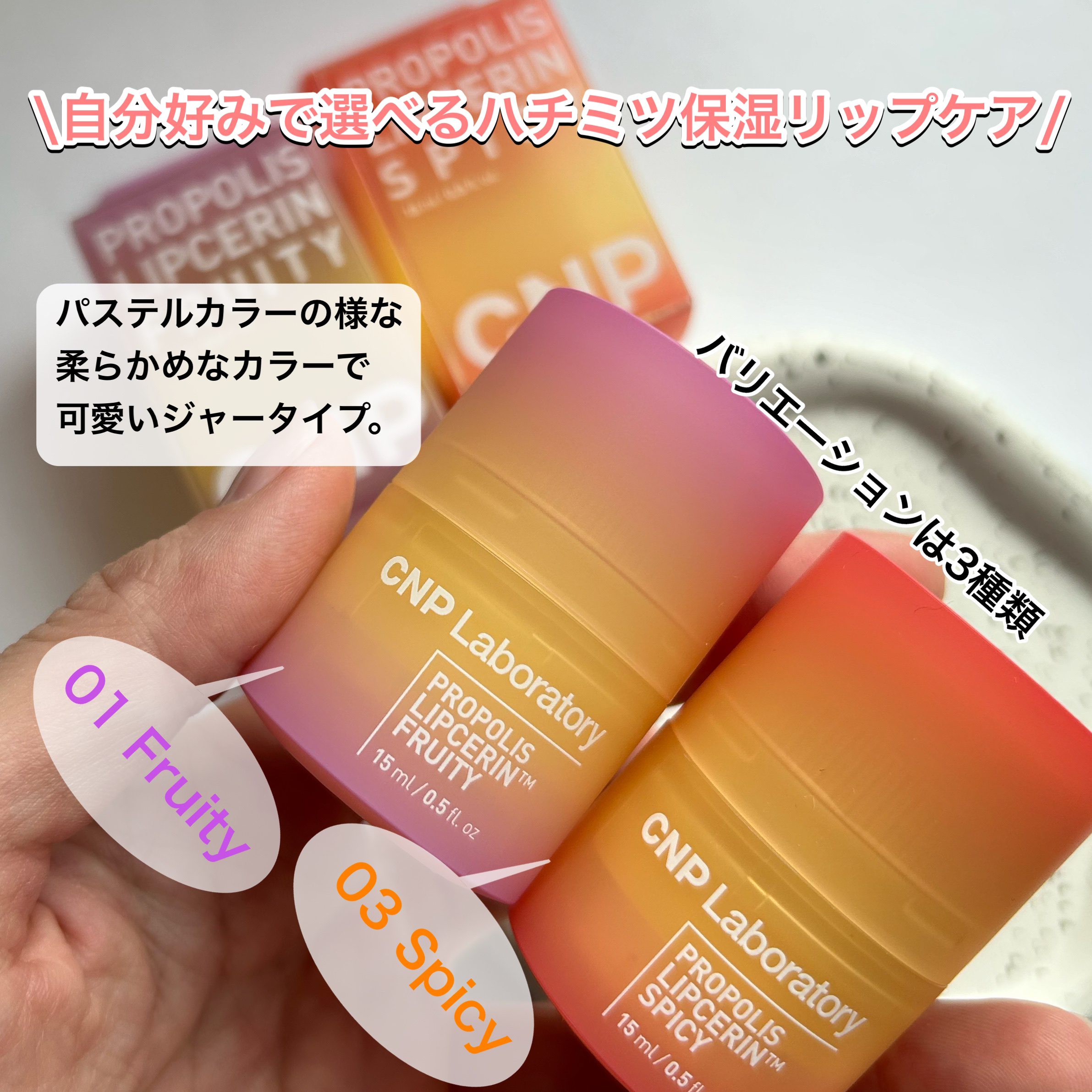 ハチミツ保湿リップケア 🧡💛プロポリスリップセリンスパイシー(Spicy)弾力・ボリューム感 サンショウエキスが配合されていて塗るとプランパーのようなピリピリ感が少しだけあります🤏🏽 Tri-Berry Complex™M*配合のフォーミュラが強力な保湿感とハリ感を与える甘いゼリー香りとってもいい匂い💗💗 ダイヤル式のリップクリームなので使い終わるまで続くブラッシュ感が良い◯