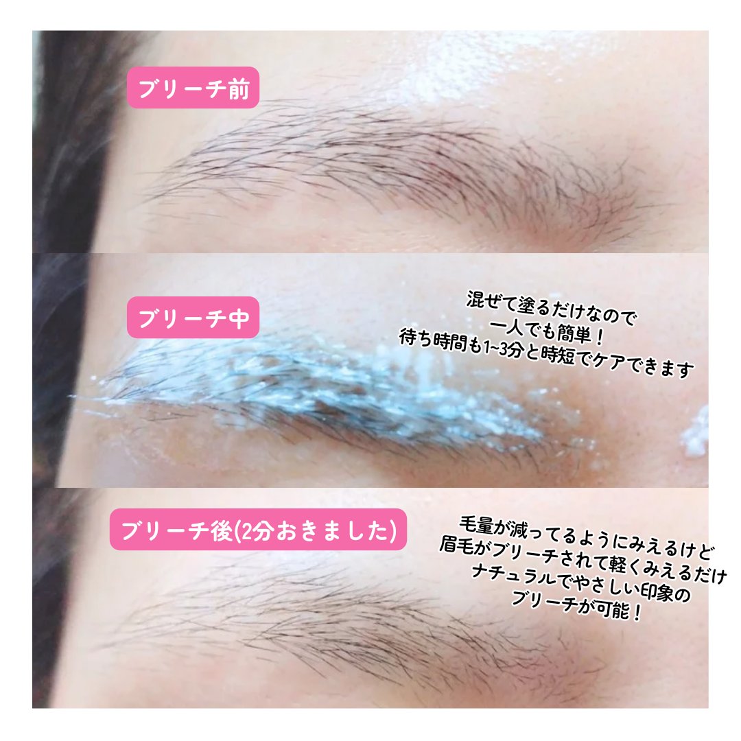 最短1分で暗いカラーを明るいカラーに✨️ 眉毛ブリーチのセットです。 手軽で簡単に眉毛ブリーチが出来ます♪ 分かりやすい説明書が入っています。眉毛とお肌を保護してくれるセラムも入っていて脱色剤の臭いもキツくないです🫶