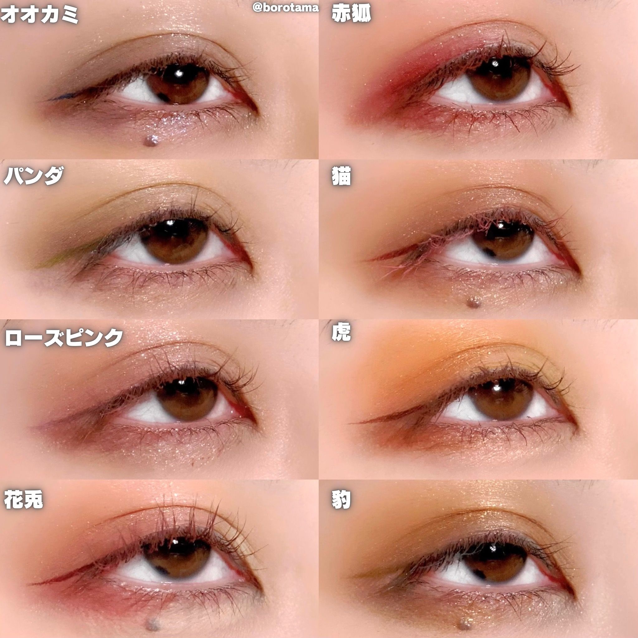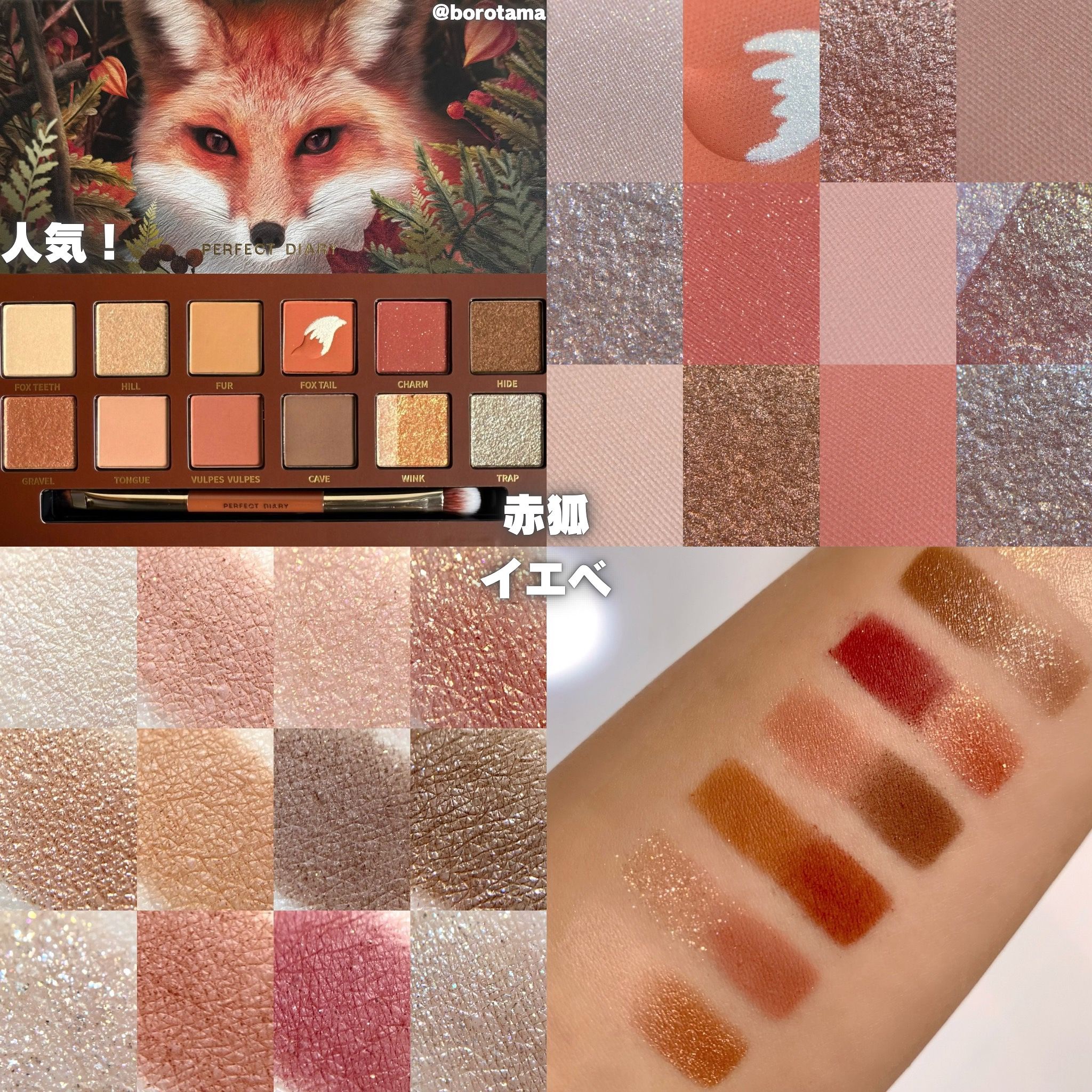 - #1.「SNSで話題になったシリーズ」 2021年のTmallで年間900万件の売り上げで、中国のSNSで超話題になりました。 #2.「4種類粉感」 滑らかマット、キラキララメ、モチモチベース状、ラメがついているマット色、多彩なカラーの組み合わせ、きめ細かい質感、肌に高密着で長持ち。 <虎> 虎からインスピレーションを受けたアニマルアイシャドウパレット。力強く活発なオレンジ・ゴールドをメインに、滑らかマット、キラキラグリッターなど多彩なテクスチャーとカラーの組合せで思い通りのメイクが完成。 <パンダ> ふんわりパンダのようなベージュ・ベビーピンクカラーや、パンダが住む竹林を表現したグリーンカラー。自由で愛らしいパンダからインスピレーションを受けたパレットで、かわいらしい印象も大人っぽい印象も1枚で叶える。 <猫> 猫からインスピレーションを受けたアニマルアイシャドウパレット。上品で落ち着いたブラウンとミステリアスなピンクパールがポイント。滑らかマット、キラキラグリッターなど多彩なテクスチャーとカラーの組合せで思い通りのメイクが完成。 <タンチョウ鶴> 鶴からインスピレーションを受けたアニマルアイシャドウパレット。使いやすいピンクベージュ系のカラーと鶴の頭をイメージした赤×白がインパクトを与える。滑らかマット、キラキラグリッターなど多彩なテクスチャーとカラーの組合せで思い通りのメイクが完成。 <赤狐> 赤狐からインスピレーションを受けたアニマルアイシャドウパレット。イエベ向きのオレンジブラウン系のカラーをメインに、滑らかマット、キラキラグリッターなど多彩なテクスチャーとカラーの組合せで思い通りのメイクが完成。狐のしっぽを再現したデザインもカワイイ。 <ラッキーラビット> うさぎからインスピレーションを受けたアニマルアイシャドウパレット。白うさぎのキュートさと透明感が再現できる赤・ピンク系の配色。滑らかマット、キラキラグリッターなど多彩なテクスチャーとカラーの組合せで思い通りのメイクが完成。 <虎&猫> 猫のしなやかさ、虎の眼光。一つのパレットで操る、二つの表情。 「猫と虎」にインスパイアされたデュアルアイメイク:「猫ルック」のしなやかな優しさ、「虎ルック」のクールな眼差し。気分に合わせて自由にスイッチ。 「ソフトブラウン × 繊細な煌めきで、優美なキャットアイを。」 「ディープスモーキー × シャープなラインで、力強いタイガーアイを。」 <オータムチェスナット> 秋の野を映し出す赤茶色と栗色のメイクで、秋冬ならではの温かみのあるカラースケールを演出。 ソフトマット、シマー、メタリックが交わり溶け合う、多彩な質感。濃厚さの中に軽やかさも。 単色でも、重ねても美しく。多様なスタイルを叶えます。