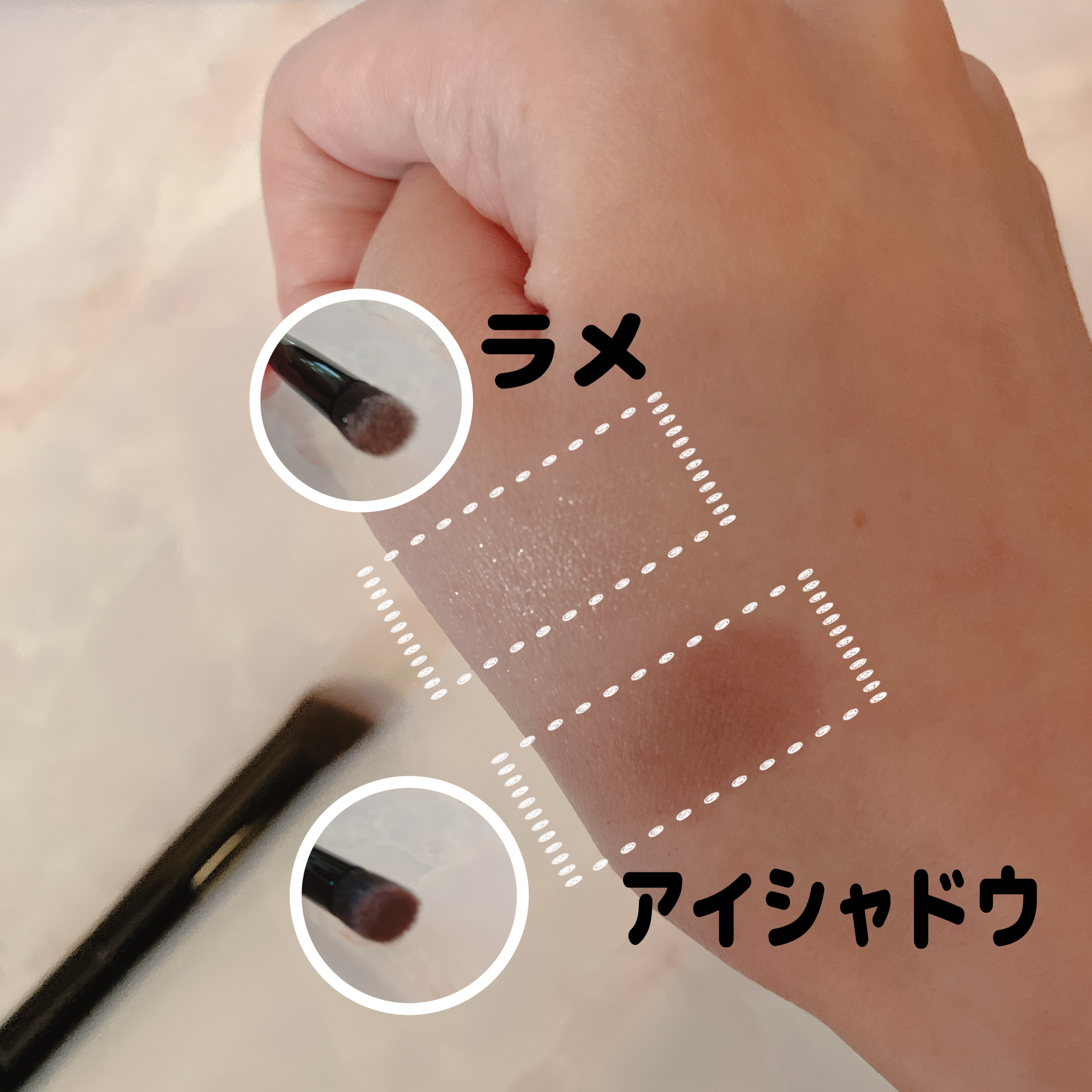 顔のあらゆる凹凸にフィットする 骨格陰影ブラシシリーズのアイシャドウブラシです。 その名もなんと、ぴたラメブラシ!!! ①密度の高い毛足で、大粒ラメもパウダーアイシャドウもしっかりまぶたにのる! KATEで人気のポッピングシルエットシャドウの右下のラメがいつもより綺麗にのって仕上がりが格段に上がりました!!