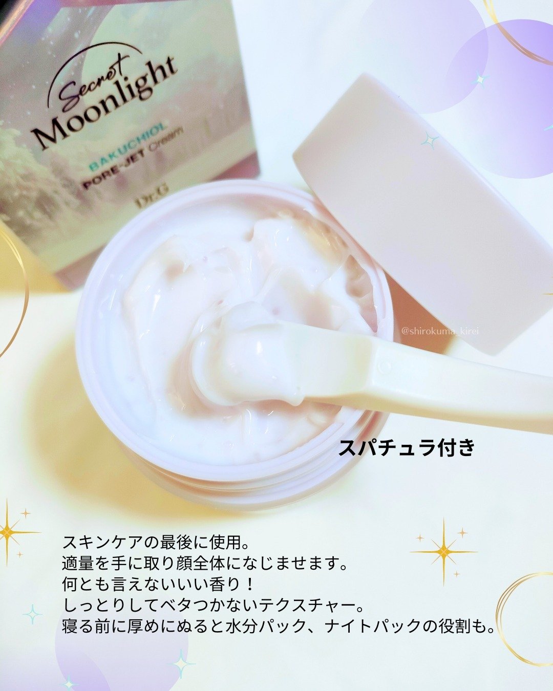 | フェイスクリームランキング第137位 | スパチュラ付きで衛生的! 紫のツブツブが入っていて もっちりとした柔らかいクリーム💕 すーっと伸びが良いです🙌 | 詳細を見る | |