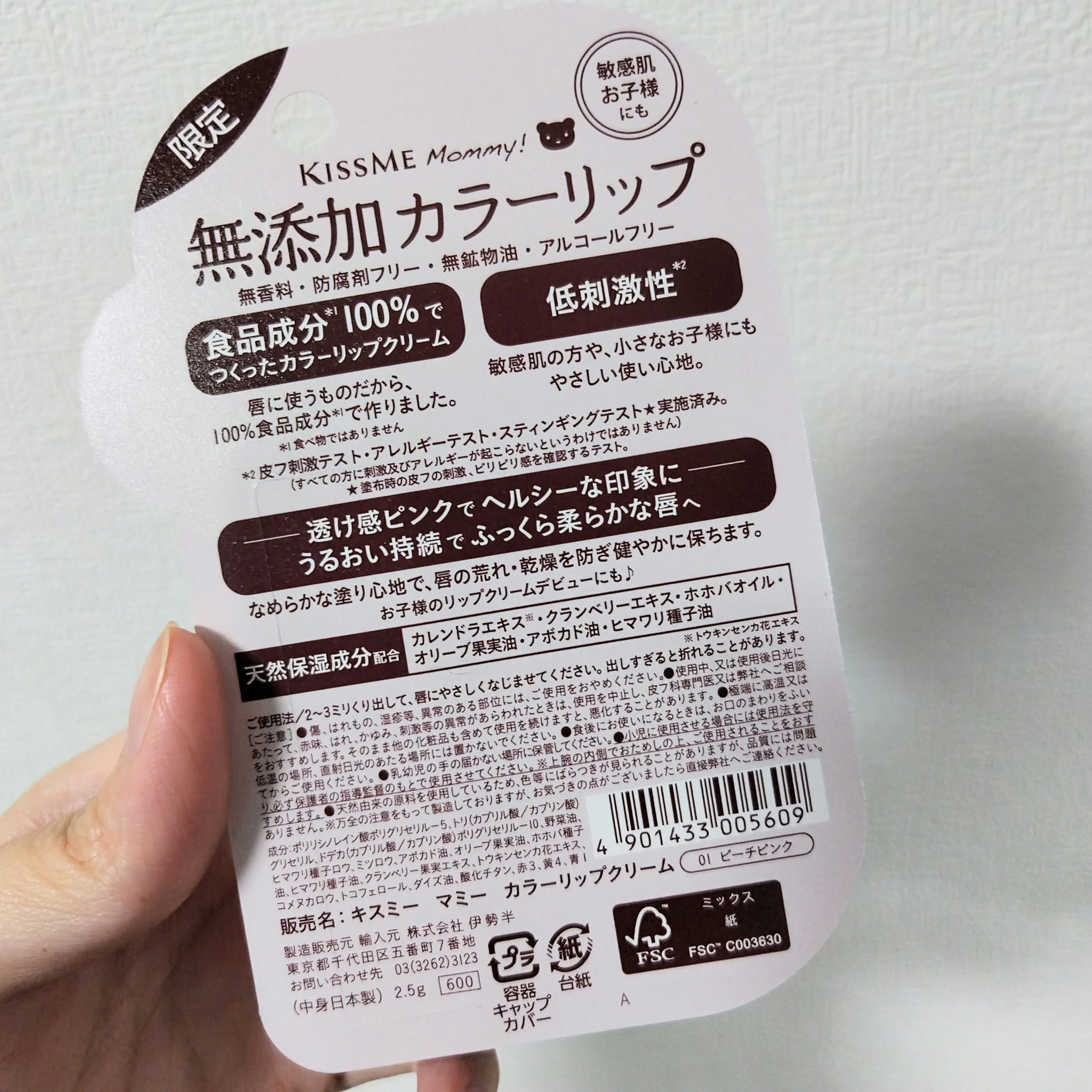 - 〈数量限定〉 親子の触れ合いタイムを楽しい時間に。食品成分※1100%のカラーリップクリーム ●食品成分※1100%でつくったリップクリーム 天然うるおい成分配合 唇に使うものだから100%食品成分※1でつくりました。 ※1 食べ物ではありません ●低刺激性※2 敏感肌の方や、小さなお子様にもやさしい使い心地。 ※2 皮フ刺激テスト・アレルギーテスト・スティンギングテスト(塗布時の皮フの刺激・ピリピリ感を確認するテスト)実施済み。 すべての方に刺激及びアレルギーが起こらないというわけではありません。 ●カラータイプでもうるおい持続。荒れがちな唇をしっかりケア なめらかな塗り心地で、唇の荒れ・乾燥を防ぎ健やかに保ちます。 ●天然うるおい成分配合 カレンドラエキス(トウキンセンカ花エキス)・クランベリーエキス・ホホバオイル・オリーブ果実油・アボカド油 ・ヒマワリ種子油(すべてうるおい成分)