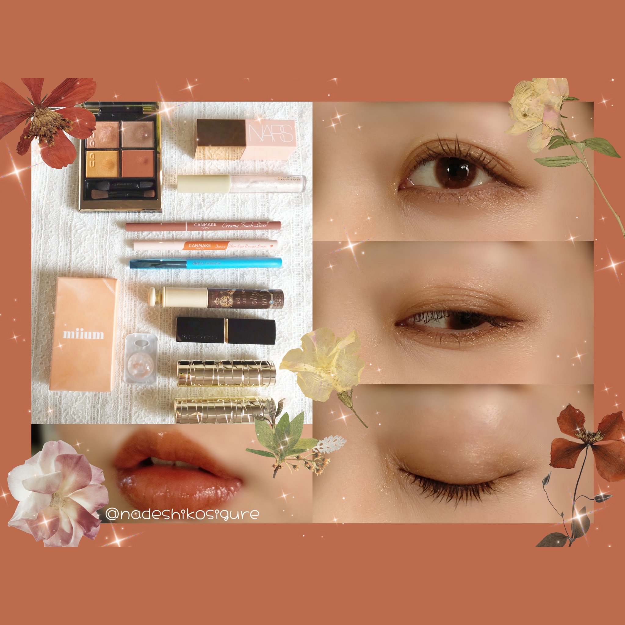 イエベ秋でもピンクブラウンメイクがしたい!!! 私は深めな色でくすみカラーの方が似合うタイプなのでローズブラウンカラーを使ってメイクしてみました🌹 アイライナー→キャンメイク クリーミータッチライナー07アズキブラウン、09ダージリンピンク