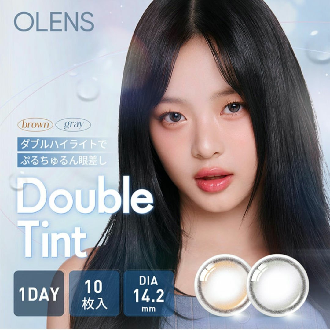 - ■OLENS Double Tint(オーレンズダブルティント) 韓国カラコン業界の話題のブランド『OLENS(オーレンズ)』の日本正式承認商品シリーズ。世界中から注目を浴びるグループ「NewJeans (ニュージーンズ)」がイメージモデル。トレンドのハイライトカラーがダブルになっているので、装用中レンズが回転しても違和感を感じにくく使用できる最新の水光カラコン。ハイライトカラーが瞳に立体感とうるツヤ感を演出してくれます! ■使い方 コンタクトレンズは高度管理医療機器です。必ず眼科医の処方に従って購入してください。 ■使用上の留意事項 コンタクトレンズは高度管理医療機器です。眼科医の指導に従い装用期間を厳守し、正しくお使いください。眼の定期検査を必ず受けてください。添付文書を必ず読み、取扱方法、装用時間を守って正しくお使いください。少しでも異常を感じたら、直ちに眼科医の検査を受けてください。