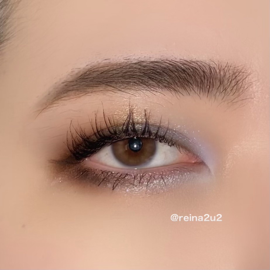 上まぶたはグリーンを二重幅に広げ、ゴールドを上から重ねてブレンディングブラシでぼかし、シルバーを指で乗せる。 シルバーのラメがとっても綺麗で思ったよりも使いやすい色です🥰 華やかなメイクがしたい時にぴったりです✨