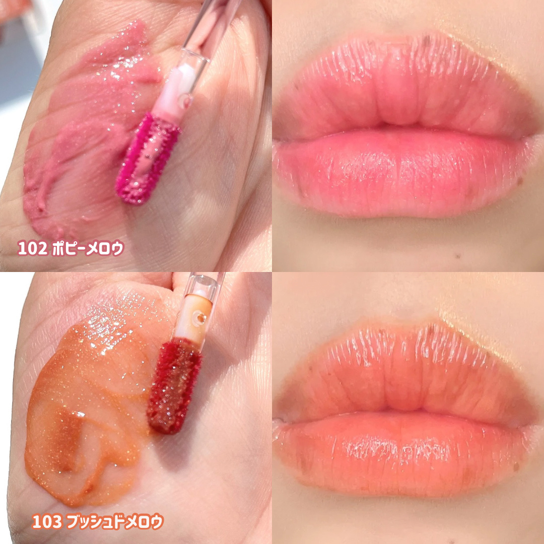 うさぎの舌リップみたいな色だよね? ほのかにプランプ効果があって、気持ちスースーするけど、 ピリピリしないからプランパー初心者でも使えるよ🌸 発色も良くて色持ちもいいからおすすめ! コロンとしたパケも可愛い🫶🏻