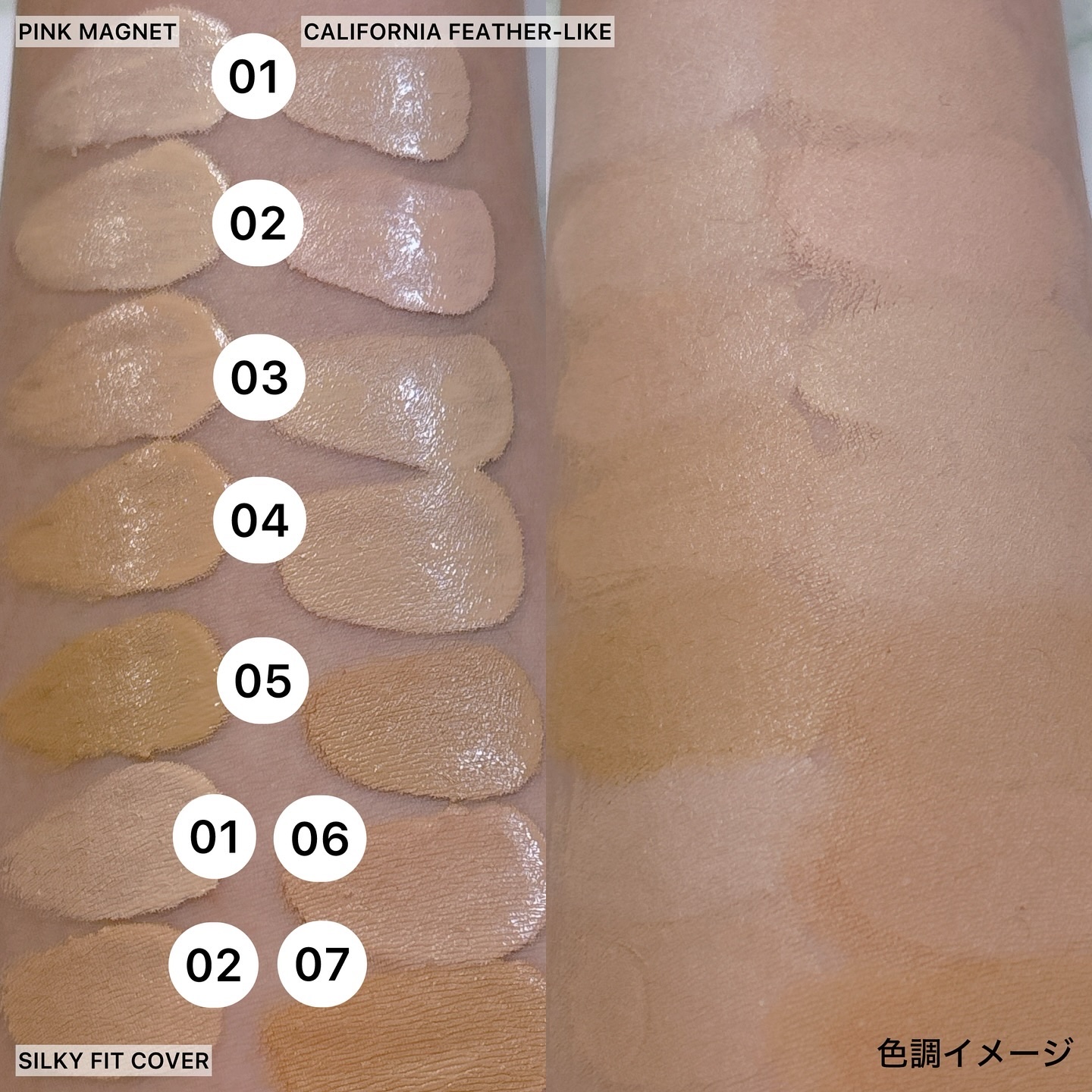 ころんっと可愛いパケがたまらない🫶🏻 3種類のラインナップ🌈 密着力は高いのにベタつきは皆無で軽い使用感🥀 3種の中で最も万人ウケしそうな仕上がりだなっと感じました🌟 軽めの付け心地で肌呼吸もしやすそうだなっという使い心地☁️ 化粧直ししなくても良いかな?っと感じるほど、時間が経っても綺麗な仕上がり🌱