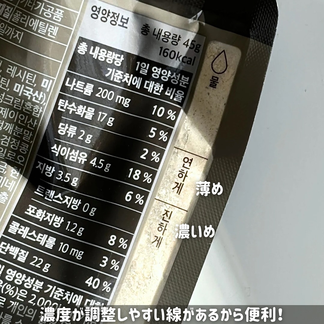 粉末の牛乳入りで水だけでOKパウチ裏にメモリが付いているので、計量せずに水や豆乳などを注いで振るだけで完成します(150mlの水分が必要) サクサクした玄米パフなどのトッピングも入っているので食べ応えあり甘すぎず風味が豊かで腹持ちも良かったです チョコラテ、コーヒー味が特に美味しかったー
