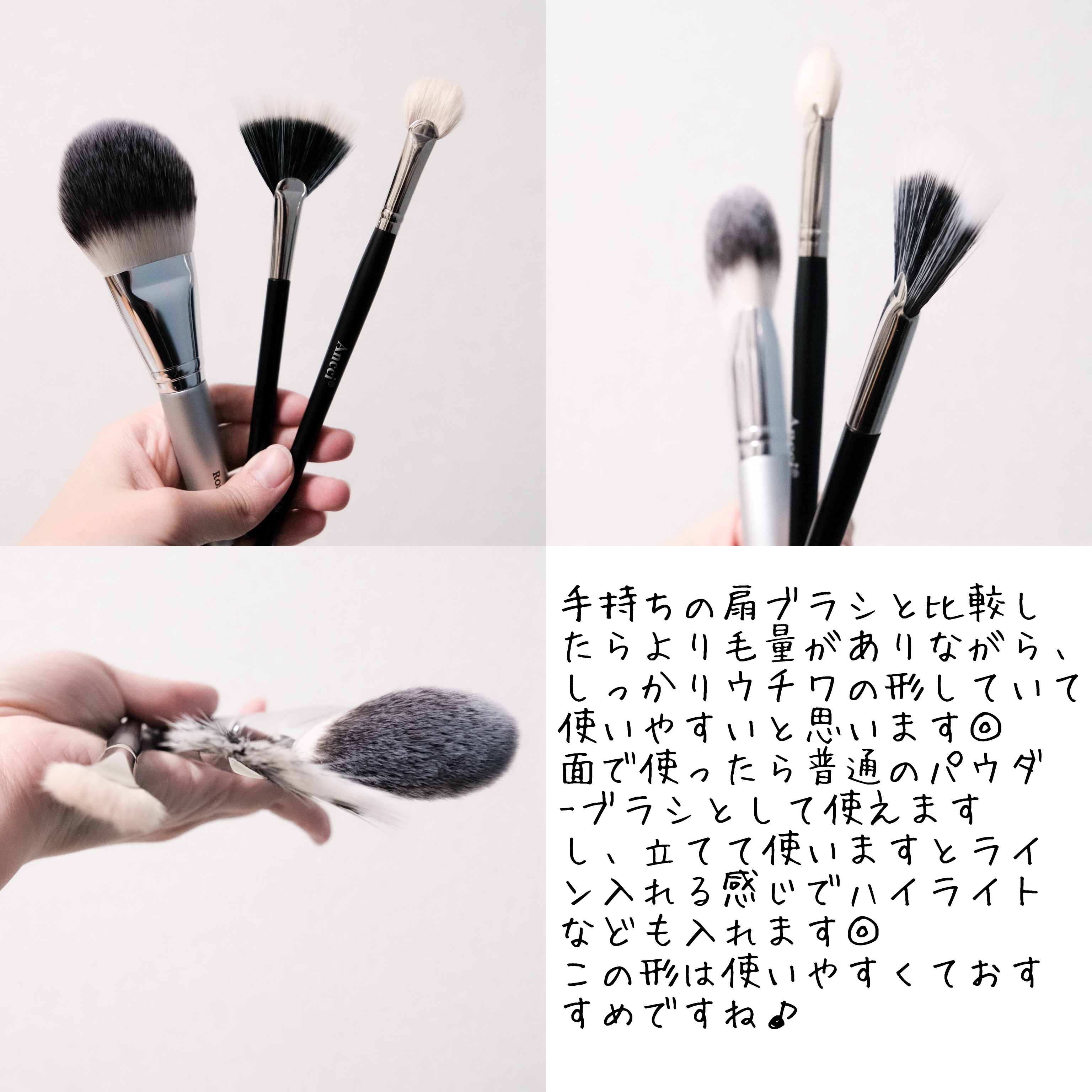 毛質によってどれほど違くなると思ってやってみました💫 基本的に同じ形に同じ重ね回数をしていますので条件そこまで大きく変わらないはずです。 人工毛は一番差がでかい印象、どうしても毛の再現の技術が大事なため、やっぱりプチプラ買うと物足りないとかチクチク痛く感じたことが多いです。 弾力が良くて何より粉飛びは本当に少なく、乗せたら他のより発色良くなり密着してくれます。